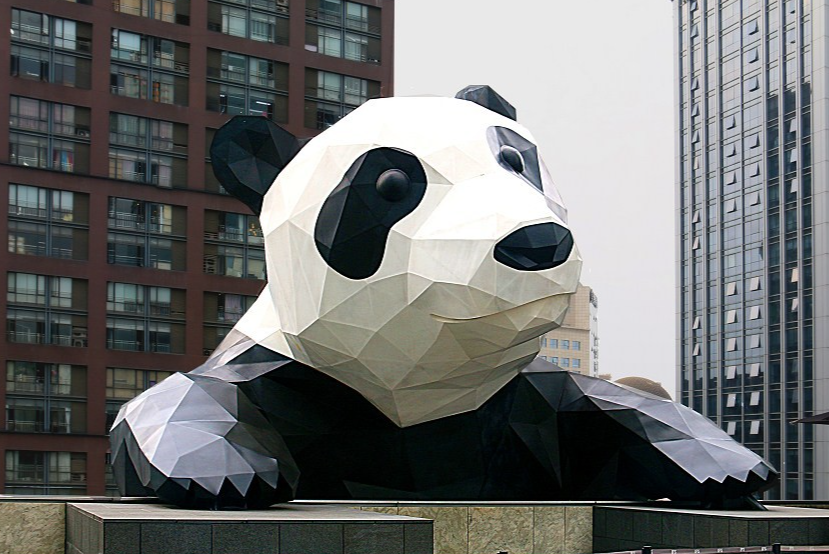 成都最火最网红的,莫过于【IFS“熊猫爬墙” 】了,独特的设计思路,让一个肥肥大大的大熊猫一半身体挂在商场的外边,一半身体爬上商场的花台,基本上你每天都能看到露天花台上排着队的人跟熊猫的大头拍照,然后商场旁边的步行街上一群人拿着相机对着熊猫的屁股拍照。
