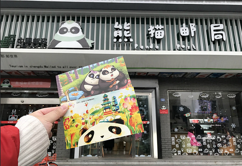 人民公园对面的【熊猫邮局】并非单纯嵌入“熊猫”元素的普通邮局,他是唯一的、本土的、成都的。“熊猫邮局”拥有全球唯一专属自己的印记—专用日戳和指定邮政编码610088。编码数字除便于记忆外,“88”两个数字加入设计元素,生动地展现了熊猫憨态可掬的形象。