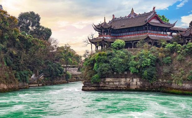 午餐后参观世界文化遗产、旷世奇功—【都江堰水利工程景区】(景区内外观光车30元/人,费用自理),乘坐古城区观光车到达都江堰离堆公园大门,都江堰水利工程由蜀郡守李冰于战国秦昭王时期(公元前 227 年)在岷江上修建的中华第一古堰,被列为“世界文化遗产”:宝瓶口引水口、飞沙堰泄洪坝、观鱼嘴分水堤,过安澜索桥,颇为壮观,还可参观 5.12 地震重建的的秦堰楼、纪念李冰父子的二王庙。可选择搭乘玉垒阁观光扶梯(40元/人,费用自理)至玉垒阁观都江堰壮丽全景。