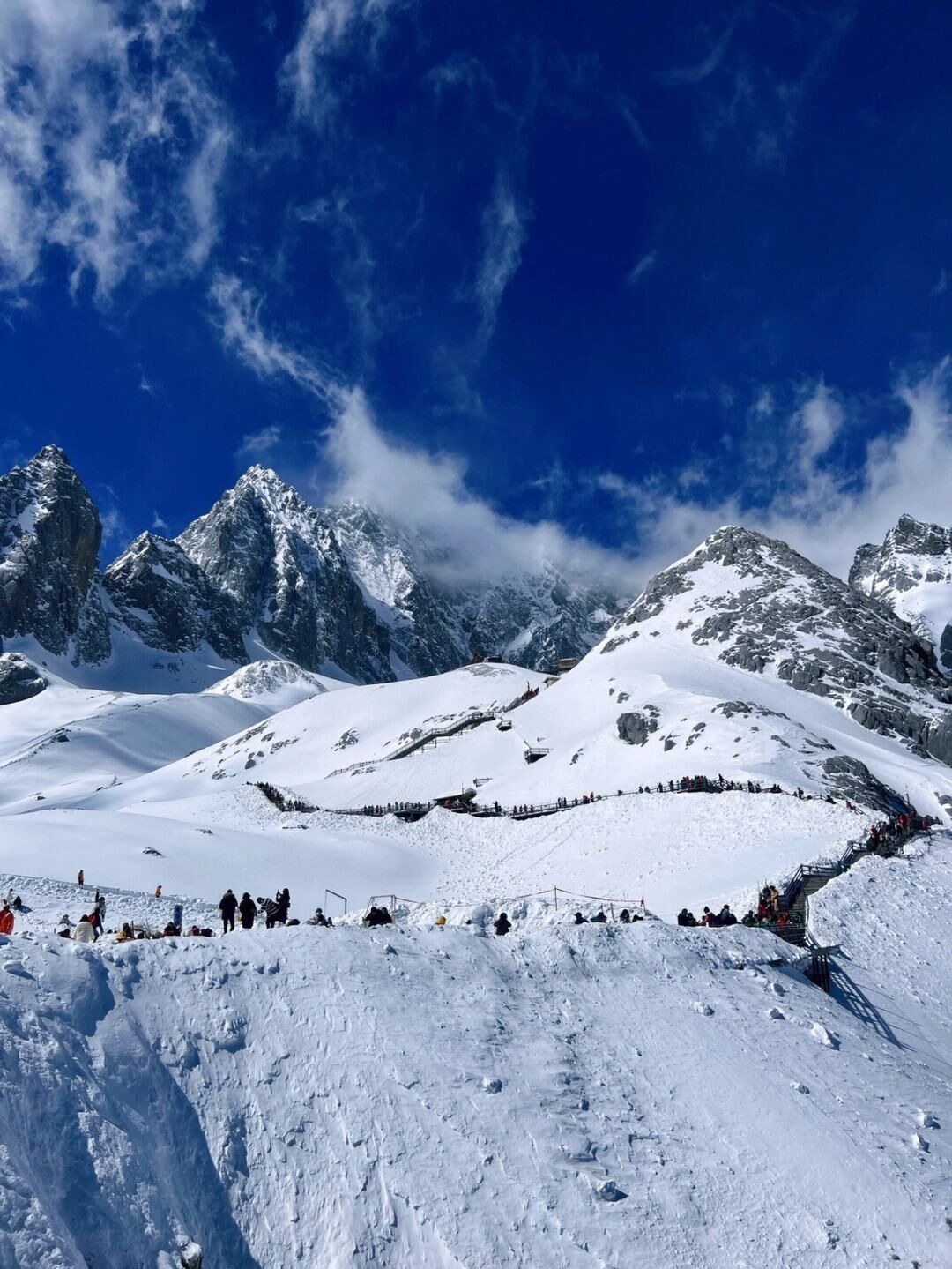 午餐后【玉龙雪山】游览具有“东方瑞士”之称的玉龙雪山景区(游览甘海子,白水河,乘冰川大索道到其主峰扇子峰,是纳西族及丽江各民族心目中的神山),那里海拨4506米,索道全长2914米,垂直高差1150米,是我国海拨最高的旅游客运索道之一。玉龙雪山是离赤道最近的雪山群,是三朵神的化身。【冰川大索道】(赠送玉龙雪山防寒服和氧气瓶)。游玉龙雪山从海拔3000米的草甸出发,穿越高大的松杉树林,远眺纳西圣山,欣赏雄奇壮丽的玉龙雪山。【印象丽江】赠送价值280元的大型歌舞表演印象丽江剧场位于海拔3100米的玉龙雪山甘海子,以玉龙雪山的雄峰为天然背景,演员由来自10个少数民族的500个农民组成。【蓝月谷】摄影爱好者的摄影圣地,其前身为早前人们所熟知的"白水河"。在晴天时,水的颜色是蓝色的,而且山谷呈月牙形,远看就像一轮蓝色的月亮镶嵌在玉龙雪山脚下,所以名叫蓝月谷。而白水河这个名字是因为湖底的泥巴是白色的,下雨时水会变成白色,所以又叫白水河(电瓶车60元/人自理)。随后乘大理或丽江动车返回昆明,欣赏沿途的高原风光。
