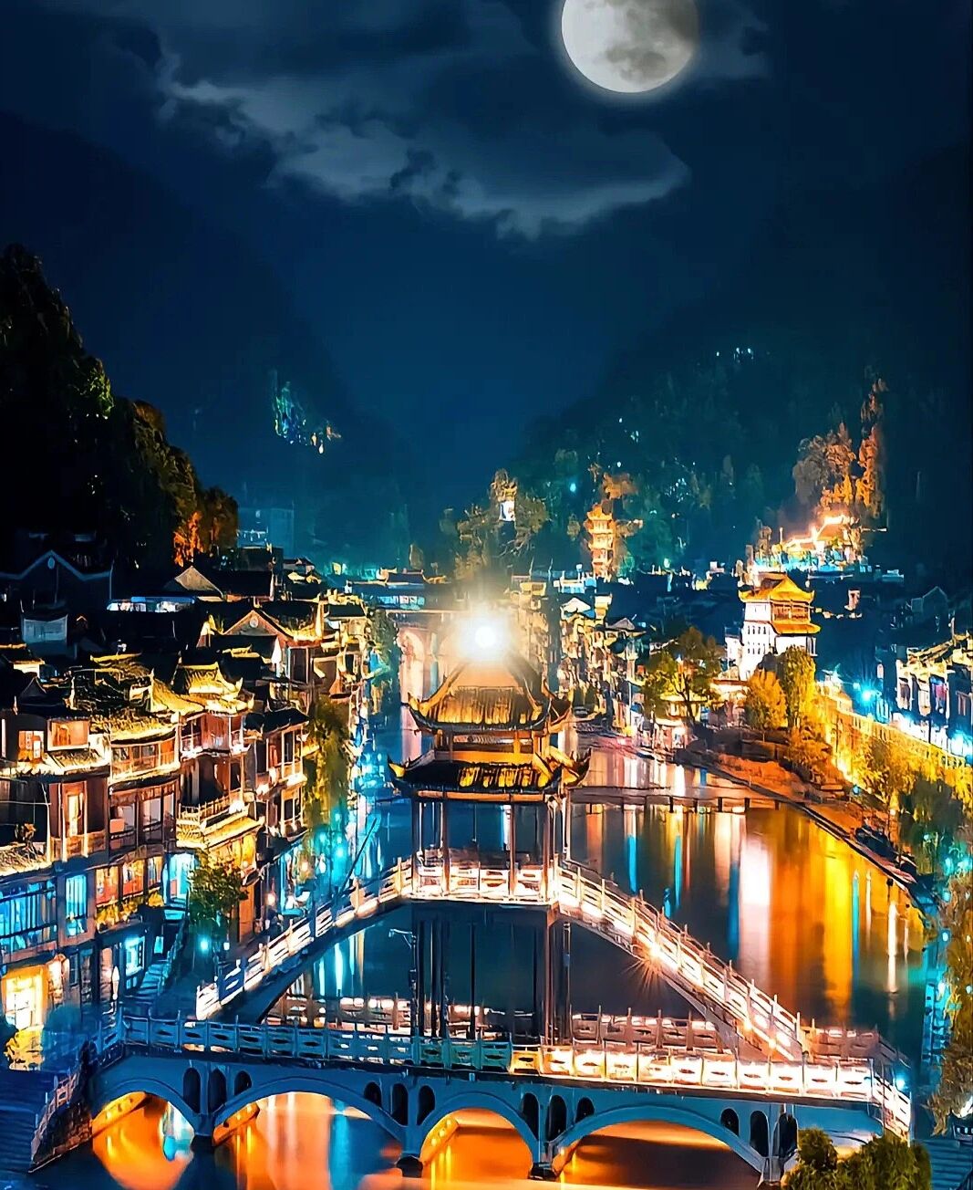 乘车赴【天门山国家森林公园】,乘高山客运索道(长7.5公里),走玻璃栈道,远观鬼谷洞;拜求儿洞;游天界佛国天门山寺;乘观光汽车体验公路奇观“99弯通天大道”的奇绝;登999级天梯或乘扶梯至天然穿山溶洞“天门洞”体验自然造化的神奇和震撼。下午乘车赴湘西,游览挂在瀑布上的土家第一镇-【芙蓉镇】(电瓶车28元/人自理),该镇美誉为:“中国历史文化名镇”、“挂在瀑布上的千年古镇”、“中国十大美丽乡镇之一”“土家之源、土家之都”、“最朴实最美妙的影视拍摄基地”,后赴凤凰入住酒店,可自由欣赏凤凰夜景。