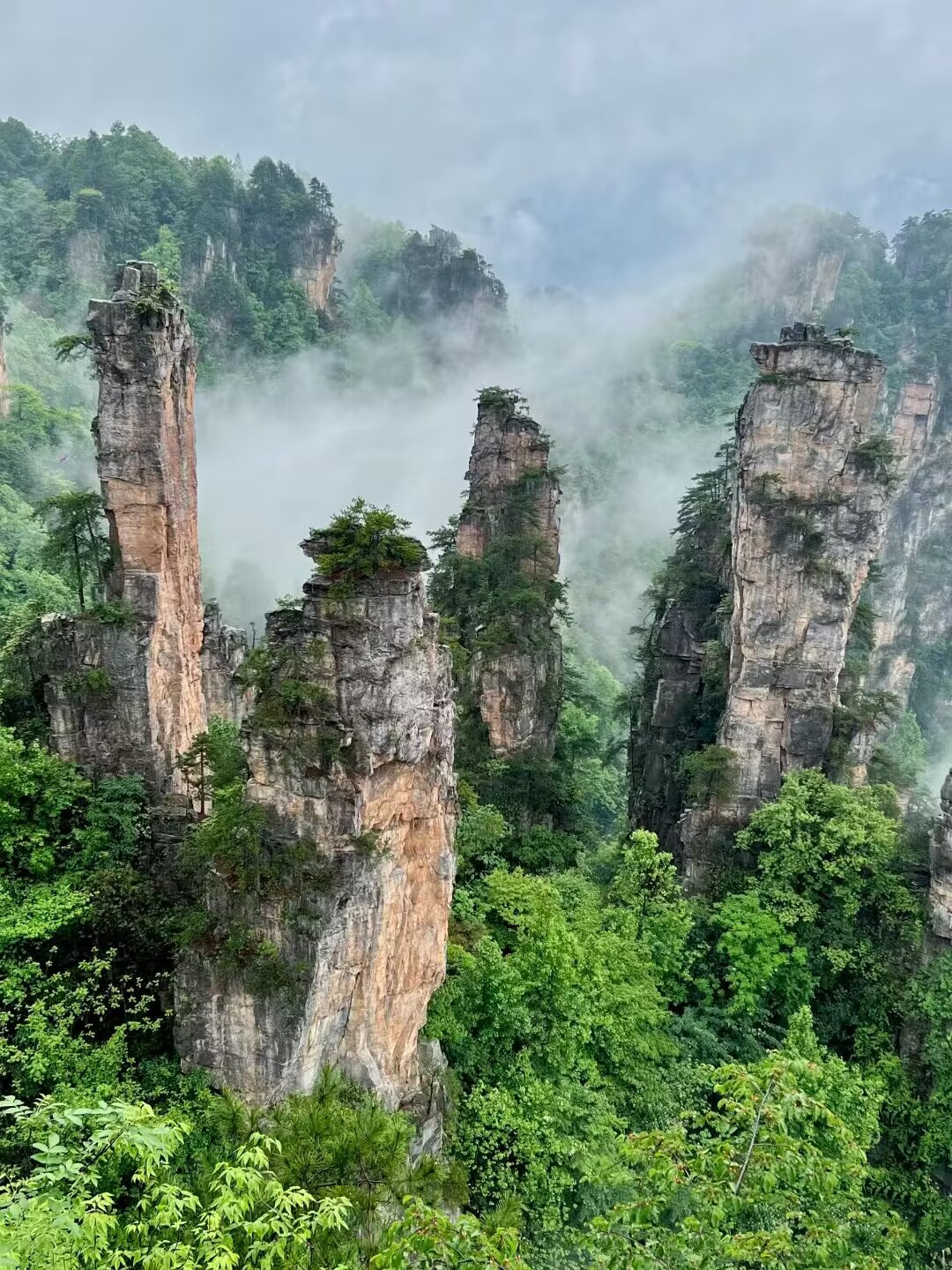 游览【张家界国家森林公园】-因溪水流经金鞭岩而得名的【金鞭溪】:张家界的黄金旅游区,水绕四门,蜿转曲折,幽静异常,随山而移,穿行在峰峦幽谷云间,迤逦延伸于鸟语花香之中(游览时间不少于2小时),车返市区,下午乘车返回张家界市区后自由活动(正常行车时间1小时,全程县道)。