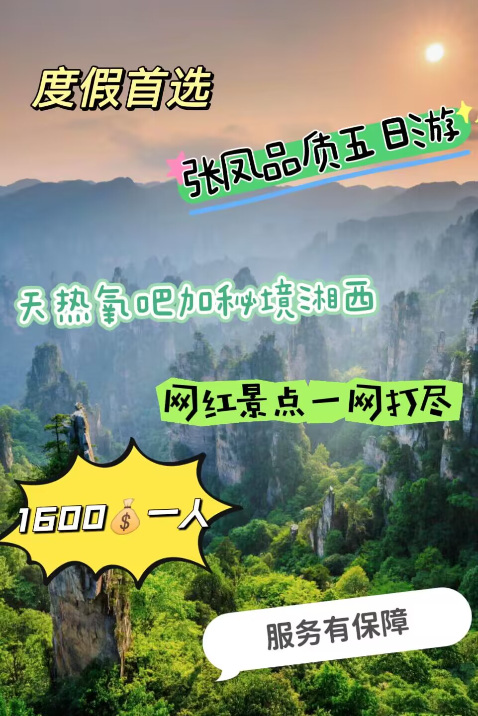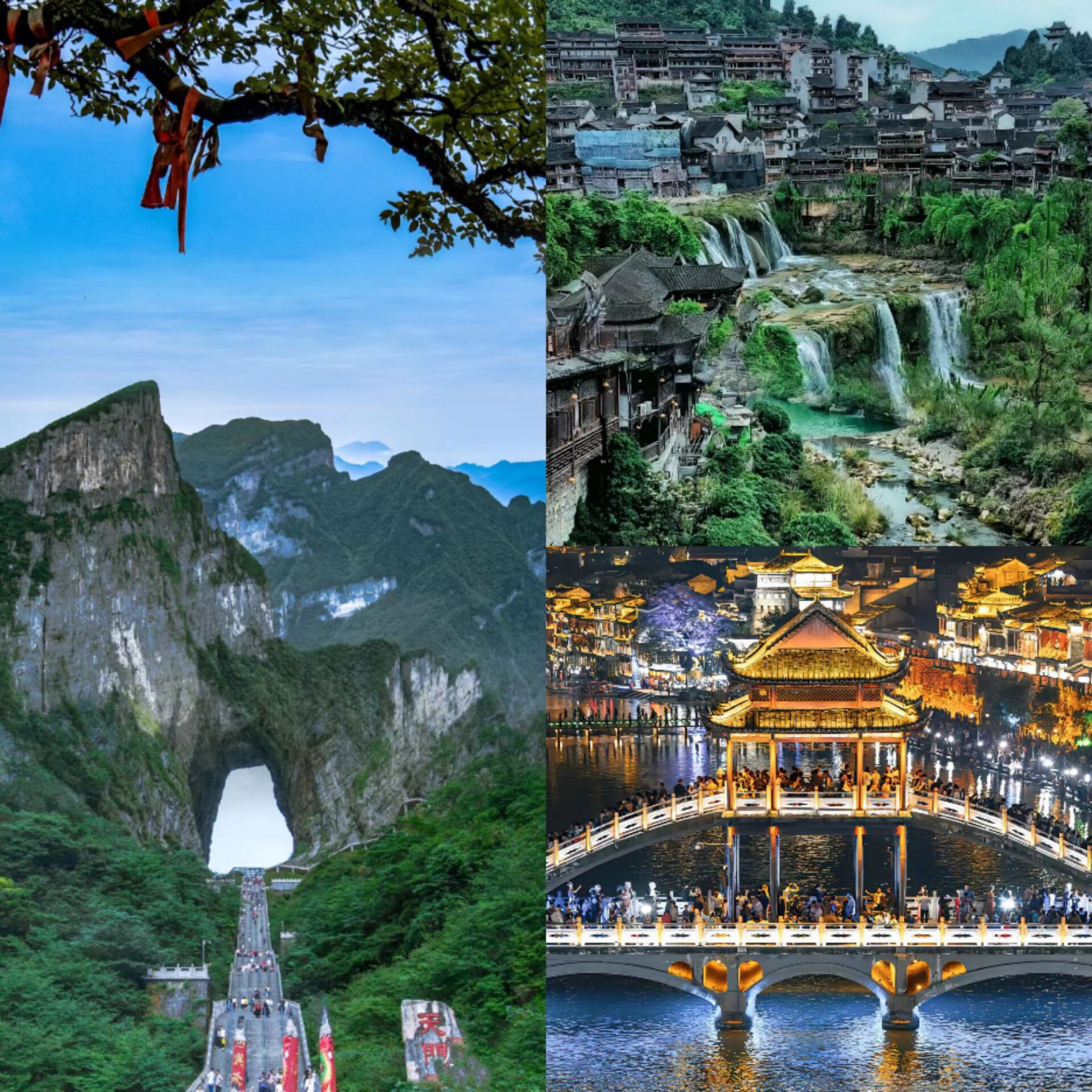 服务保障:张家界森林公园(探秘阿凡达电影悬浮山+) ++天门山玻璃栈道+抖音彩蛋芙蓉镇/+凤凰璀璨夜景网红地标美景- -网打尽!