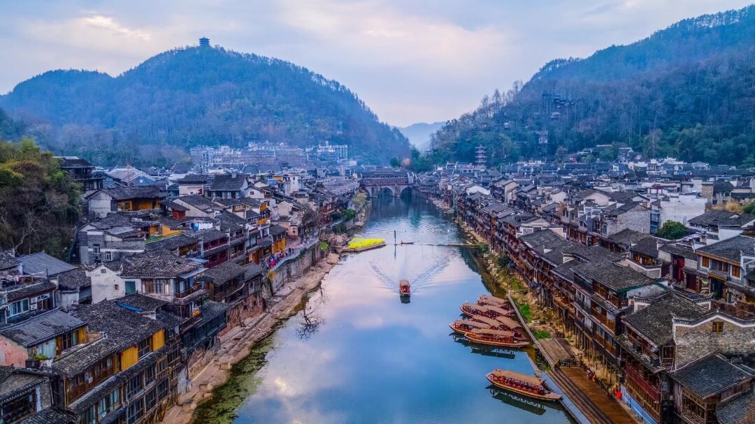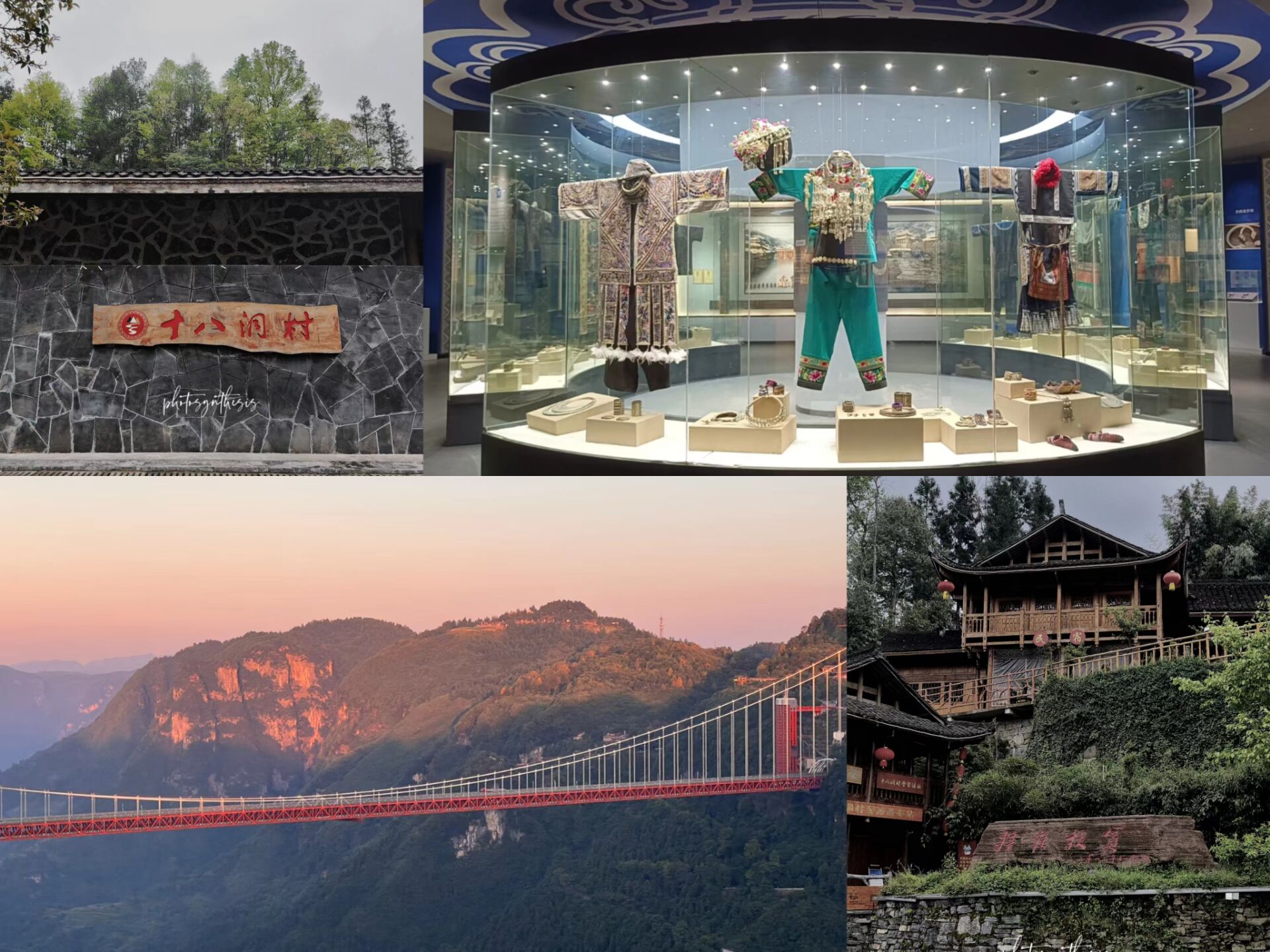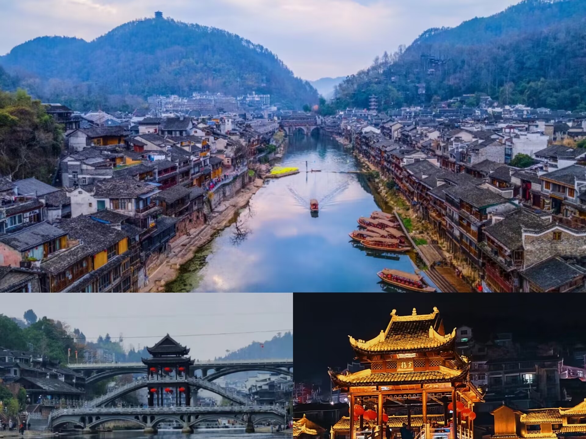 早起后,乘车前往吉首,参观【湘西丝绸博物馆】,后乘车前往矮寨奇观景区,游览【悬崖栈道】,全长1.5公里,垂直落差500米,采用现代设计语言,萃取“蝴蝶”、“飘带”等苗族文化元素,以期形成戏剧性“跌宕起伏”、“惊心动魄”的旗帜性游步道系统。后至【矮寨大桥】(门票已含),乘观光电梯至大桥观光通道,近距离观亚洲第一的斜拉式铁索桥矮寨大桥,桥面设计标高与地面高差达330米左右。下午,乘车前往【十八洞村】,该村地处高寒山区,冬长夏短,属高山溶岩地区,平均海拨700米,生态环境优美,境内自然景观独特,被誉为“小张家界”。游览结束后,乘车前往芙蓉镇,入住酒店。晚上可以自行欣赏芙蓉镇迷人夜景。