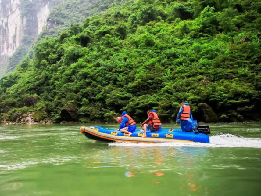 早餐后乘车前往前往【九天玄女洞】--“滴石铸玄女,暗河镂九天”。首先由专人带领一起“竹竿舞”,领略土家风情、后游览“亚洲第一洞”九天洞,面积250多万平方米,相当于400个标准足球场大小,被亿万游客誉为“世界奇迹”、“亚洲最大、世界最奇”、“溶洞女王”。后游览【茅岩河平湖游】,茅岩河是一幅多彩多姿、生动活泼的水国画,是一帧竞奇斗艳、婀娜多娇的青山图。然后游玩【茅岩河漂流】项目,目前已成为中国最大的和最安全的旅游漂流项目,是张家界“山、水、洞”旅游精品项目中最富刺激的项目。与浪共舞,一漂难忘,驾橡皮舟沿茅岩河漂流而下,漂流水程20公里,落差66米,有惊无险的河滩共55个。结束茅岩河漂流行程后乘车返回张家界市区,入住酒店休息。