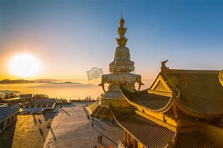 早餐后,前往峨眉山。【峨眉山-金顶】乘坐观光车(费用90元自理,上行索道80/下行索道40需自理)至雷洞坪,徒步至接引殿。峨眉金顶是以一尊48米高的十方普贤铜像为中心,由耀日的金殿、雄浑的铜殿、灼灼的银殿和洁白的朝圣大道组成的新金顶。金顶为峨眉山游程的最高峰,其海拔为3077米。顶上是个小平原,原有铜殿一座,在太阳的照射下,光彩夺目,故而得名金顶。登上金顶,人们顿觉万象排空,气势磅礴,惊叹天地之奇妙。在峨眉山金顶,还可能欣赏峨眉的四大奇景:日出、云海、佛光、圣灯。