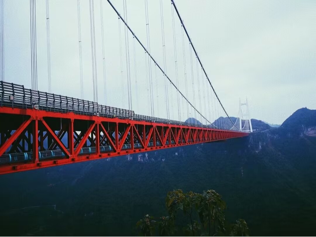 早起后,乘车前往吉首,参观【湘西丝绸博物馆】(参观时间90分钟)。后乘车前往矮寨奇观景区,游览【悬崖栈道】(门票已含),全长1.5公里,垂直落差500米,采用现代设计语言,萃取“蝴蝶”、“飘带”等苗族文化元素,以期形成戏剧性“跌宕起伏”、“惊心动魄”的旗帜性游步道系统。游览悬崖栈道时不仅可以欣赏到山高谷深、崖陡壁俏、林深路幽、巍峨险峻的武陵山脉中最精彩、最险峻、最梦幻的地段,更有天桥(矮寨大桥)、天路(公路奇观)、天台(天问台)交相辉映、互为景致,移步入云,一步一景,构成人文与自然共生,壮丽于精巧同在的峡谷奇观。后至【矮寨大桥】(门票已含),乘观光电梯至大桥观光通道,近距离观亚洲第一的斜拉式铁索桥矮寨大桥,桥面设计标高与地面高差达330米左右。桥型方案为钢桁加劲梁单跨悬索桥,全长1073.65m。悬索桥的主跨为1176m。该桥跨越矮寨大峡谷,主跨居世界第三、亚洲第一。矮寨公路奇观一览无余,让您美景中感叹的祖国的强大。