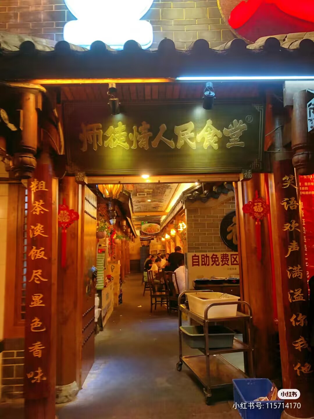 午餐享用【师徒情主题人民食堂】:成都最火爆、最有情怀的红色怀旧的记忆餐厅。厨王大刀白肉、食堂木桶鱼、招牌花椒兔、鲜椒口口脆、连山回锅肉、麻婆豆腐、手撕莲白,酸辣土豆、炝炒时蔬