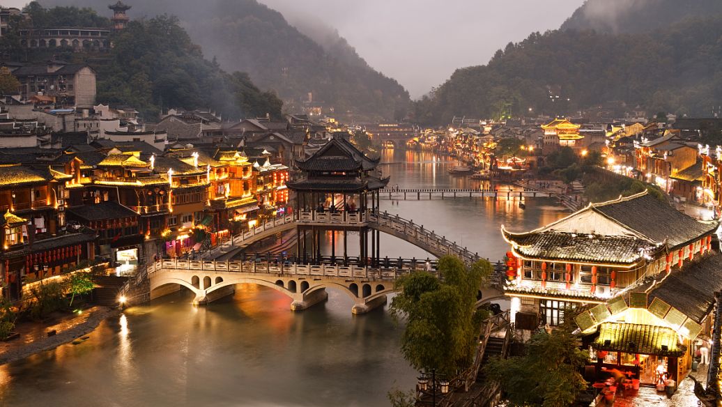 后乘车前往【边城茶峒】(门票已含),这里是湘黔渝三省市交界之地,是一脚踏三省的插花地,边城古建筑群立,其工艺、造型独特,土家苗寨风情别具一格。可参观百家书法园,名联坊,乘船上翠翠岛游览等。游览结束后,乘车前往【芙蓉镇】,入住酒店。晚上可以自行欣赏芙蓉镇迷人夜景。