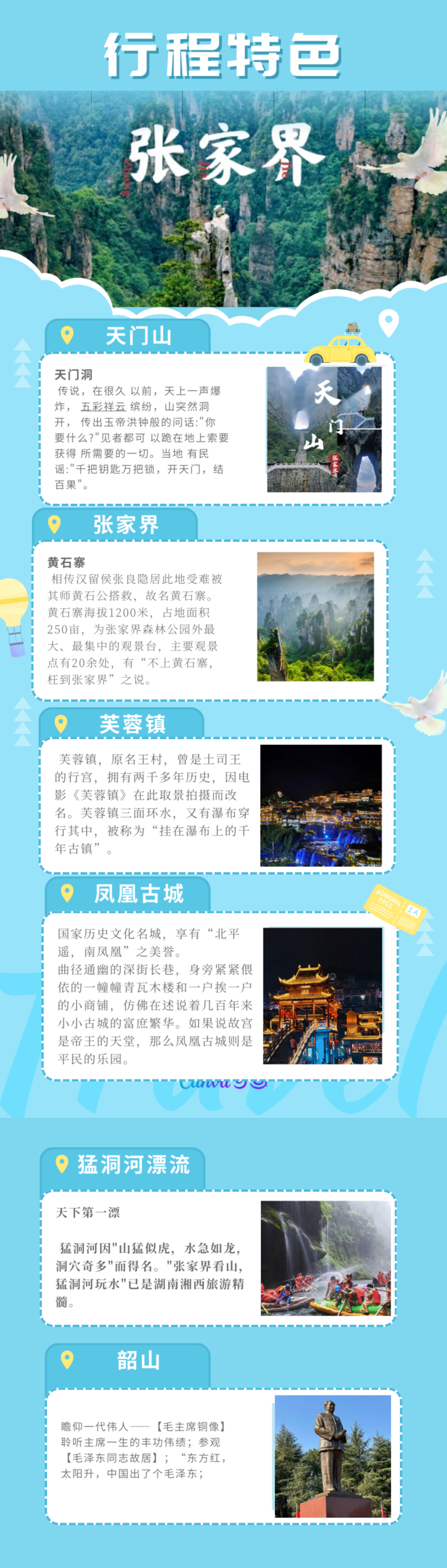 【缤纷景点】凤凰古城+芙蓉镇+张家界国家森林公园+毛泽东故居等精华景点