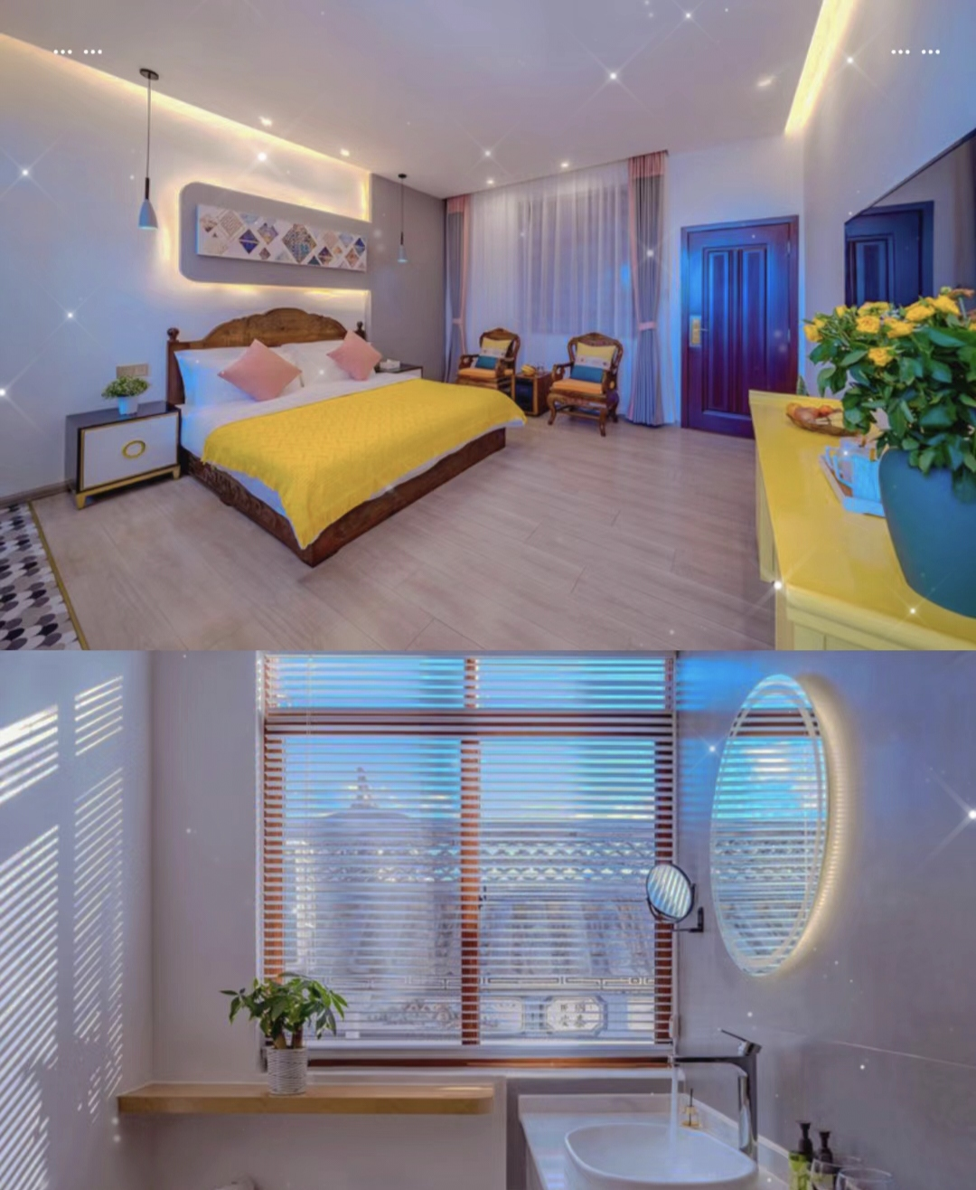 特色:中式与现代相结合,顶楼有露台,可以俯瞰 大理古城,屋内大飘窗 可以轻松看到外面景观。