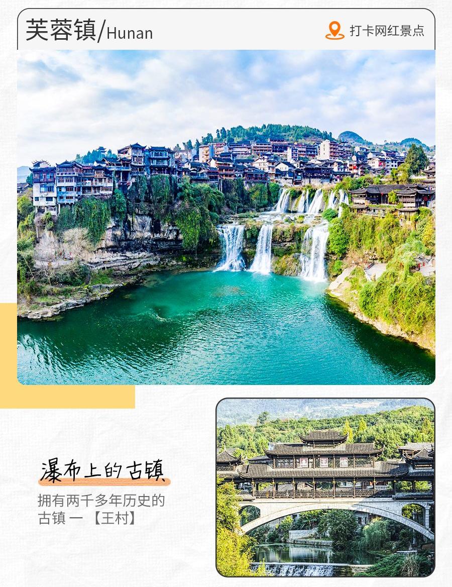 早餐后参观【湖南印象张家界】土特产超市,随后抵达【芙蓉镇】本名王村,又称“挂在瀑布上的千年古镇”有酉阳雄镇、“小南京”之美誉。