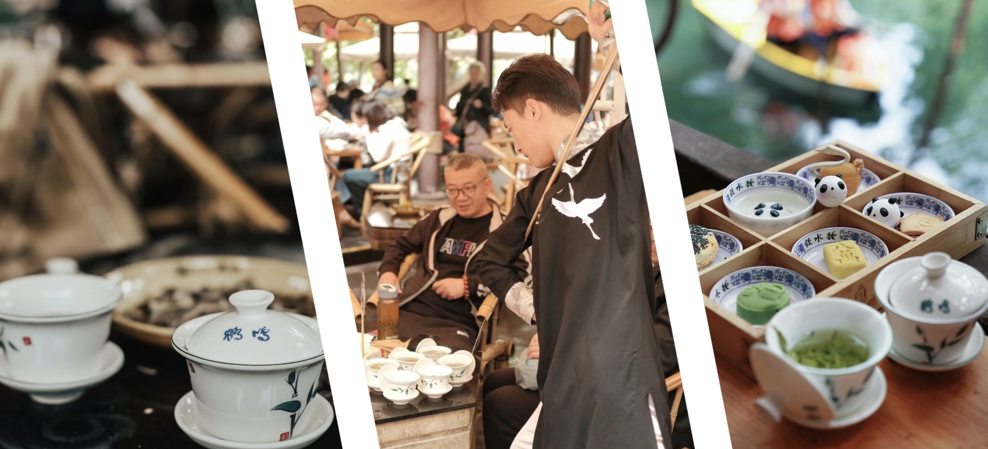 第三天:鹤鸣茶社一熊猫邮局一宽窄巷子一玉林路一空港花田一黄龙溪一夜游锦里