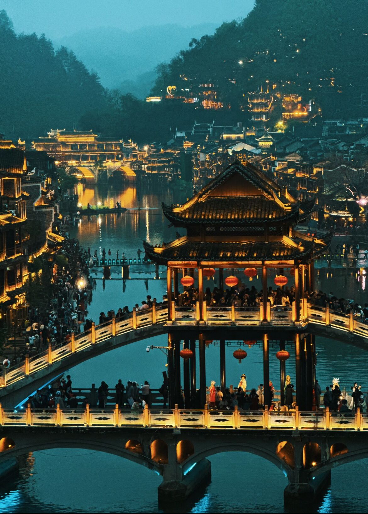 乘车赴【天门山国家森林公园】,乘高山客运索道(长7.5公里),走玻璃栈道,远观鬼谷洞;拜求儿洞;游天界佛国天门山寺;乘观光汽车体验公路奇观“99弯通天大道”的奇绝;登999级天梯或乘扶梯至天然穿山溶洞“天门洞”体验自然造化的神奇和震撼。下午乘车赴湘西,游览挂在瀑布上的土家第一镇-【芙蓉镇】(电瓶车28元/人自理),该镇美誉为:“中国历史文化名镇”、“挂在瀑布上的千年古镇”、“中国十大美丽乡镇之一”“土家之源、土家之都”、“最朴实最美妙的影视拍摄基地”,后赴凤凰入住酒店,可自由欣赏凤凰夜景。