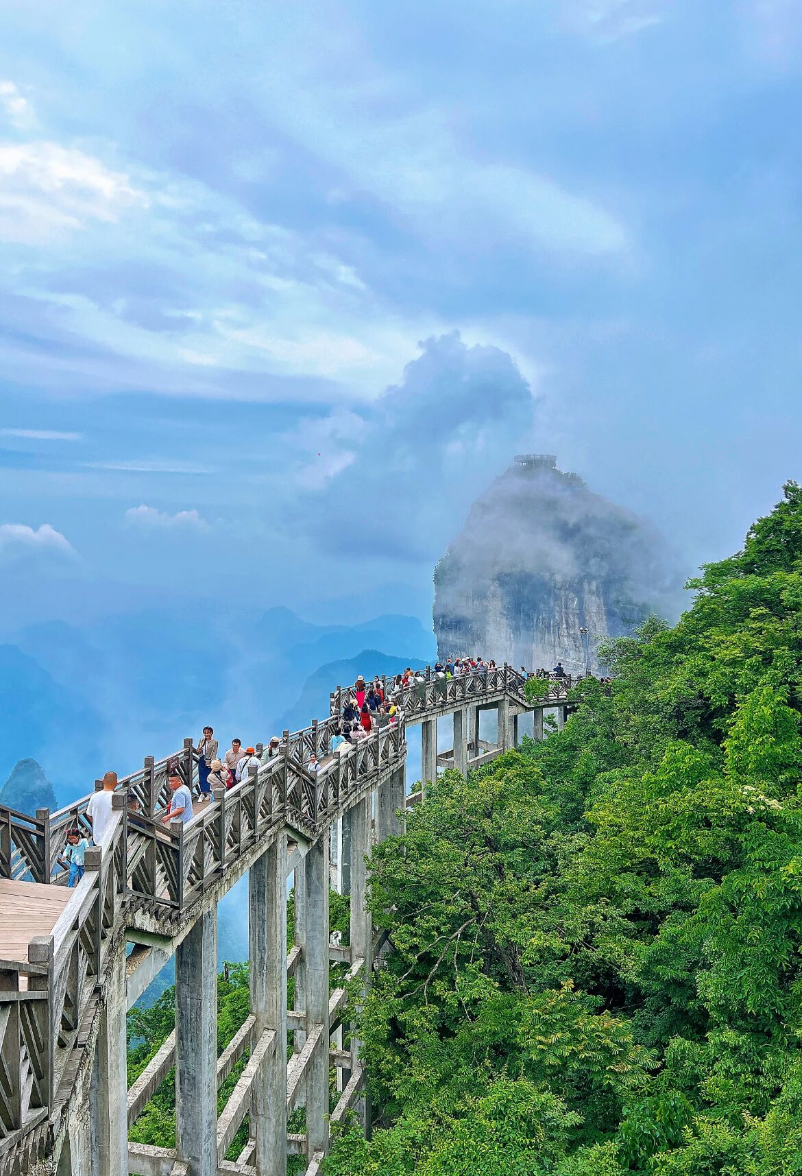 游览【张家界国家森林公园】-因溪水流经金鞭岩而得名的【金鞭溪】:张家界的黄金旅游区,水绕四门,蜿转曲折,幽静异常,随山而移,穿行在峰峦幽谷云间,迤逦延伸于鸟语花香之中(游览时间不少于2小时),车返市区,下午乘车返回张家界市区后自由活动(正常行车时间1小时,全程县道