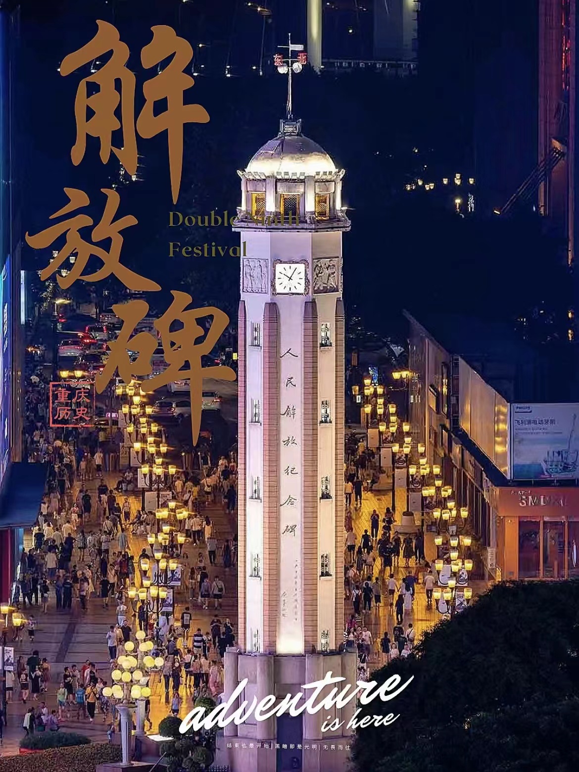 14:00游览【解放碑】(约1.5小时)解放碑,原名抗战胜利纪功碑,是全中国唯一的一座纪念中华民族抗日战争胜利的国家纪念碑,以纪念重庆对于国家的伟大贡献。位于重庆市渝中区,位于民权路、民族路和邹容路交汇处,它是抗战胜利和重庆解放的历史见证。碑体绝大部分呈白色,有些地方是肉色,上端有几架大钟,朝着四面八方,每到整点时,便会响起声音。塔是八角形的。"解放碑"是解放碑中央商务区(CBD)的代名词。有"西部第一街"美誉。有望跻身中国第三大商圈。