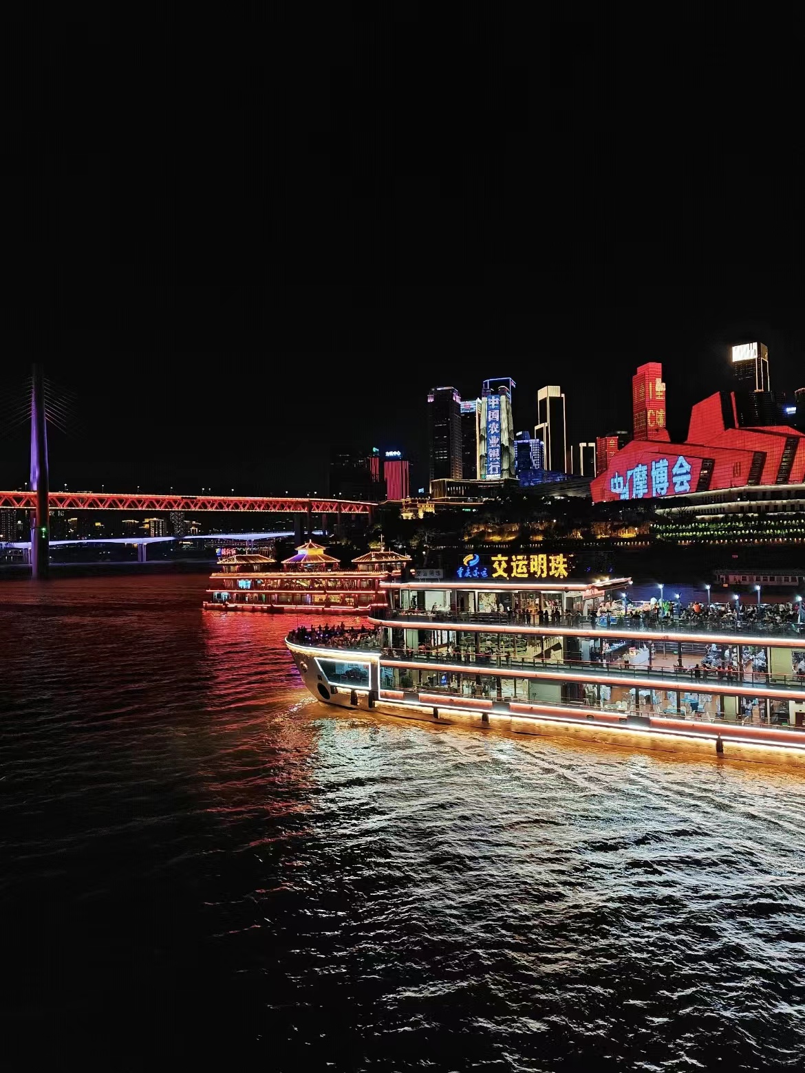 19:00 船游夜览长江(游览约45分钟)“不览夜景,枉到重庆”。山城重庆两江四岸的景色早在清代的时候即是巴渝名景之一。来重庆,不看重庆夜景,真有点感觉白来了。而看夜景最好的方式是乘坐游船,巡游两江,趁着徐徐清风,将山城容貌饱览眼中,存入心中。