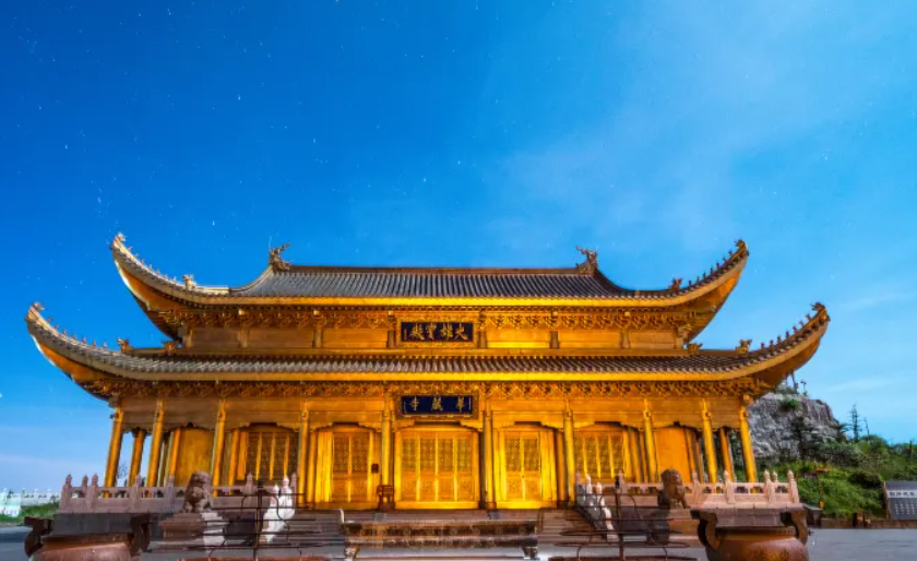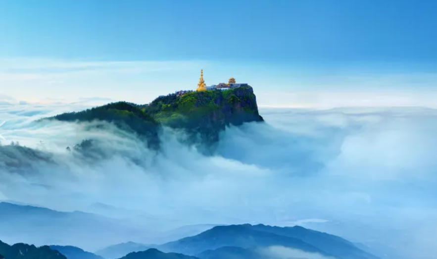 游览峨眉山金顶乘坐观光车至雷洞坪,徒步至接引殿。峨眉金顶是以一尊48米高的十方普贤铜像为中心,由耀日的金殿、雄浑的铜殿、灼灼的银殿和洁白的朝圣大道组成的新金顶。金顶为峨眉山游程的最高峰,其海拔为3077米。顶上是个小平原,原有铜殿一座,在太阳的照射下,光彩夺目,故而得名金顶。登上金顶,人们顿觉万象排空,气势磅礴,惊叹天地之奇妙。