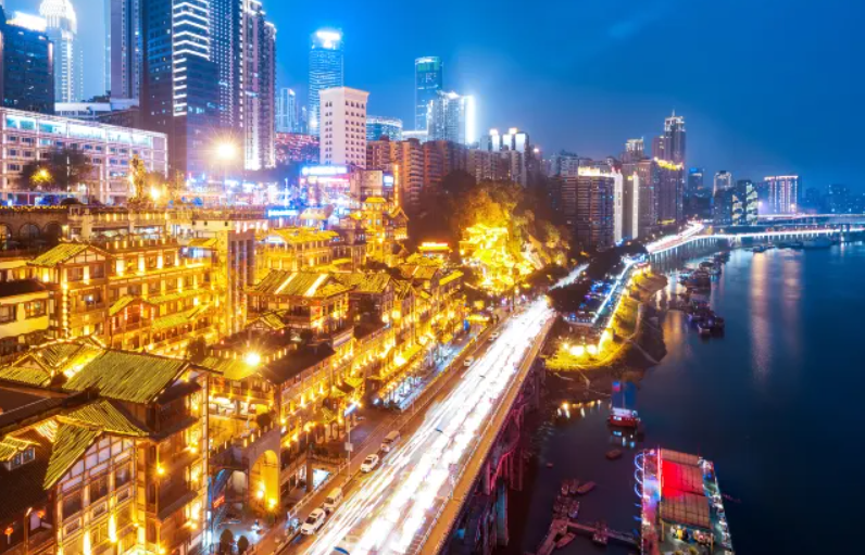 洪崖洞,拥有2300多年的历史。原名洪崖门,是古重庆城门之一,以其巴渝传统建筑和民俗风貌特色而被评为国家AAAA级旅游景区,该景区以拥城市旅游景观、商务休闲景观和城市人文景观于一体而闻名,并以最具巴渝传统建筑特色的"吊脚楼"风貌为主体,依山就势,沿崖而建,让解放碑直达江滨,是游吊脚群楼、观洪崖滴翠、逛山城老街、赏巴渝文化、看两江汇流、品天下美食的好去处,也是解放碑的会客厅。