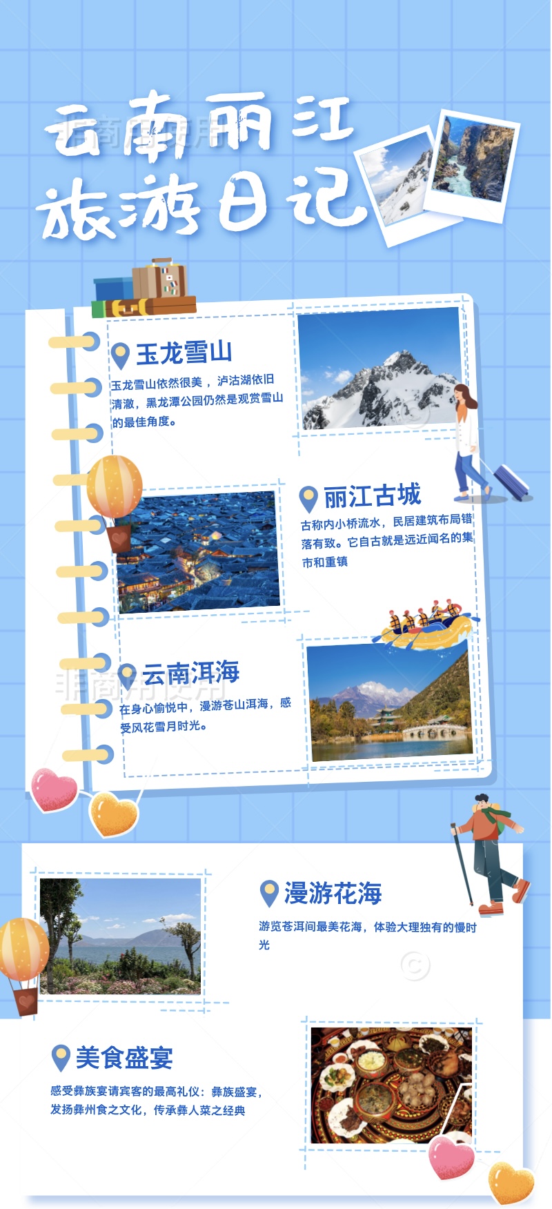 1、请根据天气预报,备好换洗衣服;注意安全,听从导游的安排,遵守团队纪律,集体行动,不擅自离开旅行团队。 2、带好有关证件(如身份证、军官证等等),手机、相机、摄像机充电器要准备充分备用电池。 3、出发前请把导游的电话号码留给家人以备紧急时联络。 4、天气变化比较快,并且早晚温差大,请注意多带衣服防止感冒。 5、为了你和他人的健康 ,请不要吸烟(车上禁止吸烟)。 6、自由活动尽量避免单独出行。导游与同行人员的手机、房间号必须记住。自己下榻的酒店的名称位置也要牢记,不要随便相信陌生人。 7、需穿登山鞋、布鞋球鞋,不宜穿皮鞋塑胶鞋,以防滑倒;“看景不走路,走路不看景”照相取景时尤要注意脚下安全;除规定的吸烟点外,不得在风景区内吸烟。 8、确保身体健康:确认自身体条件能够适应和完成旅游活动;如需随时服用药物的,请随身携带并带足用量。 |