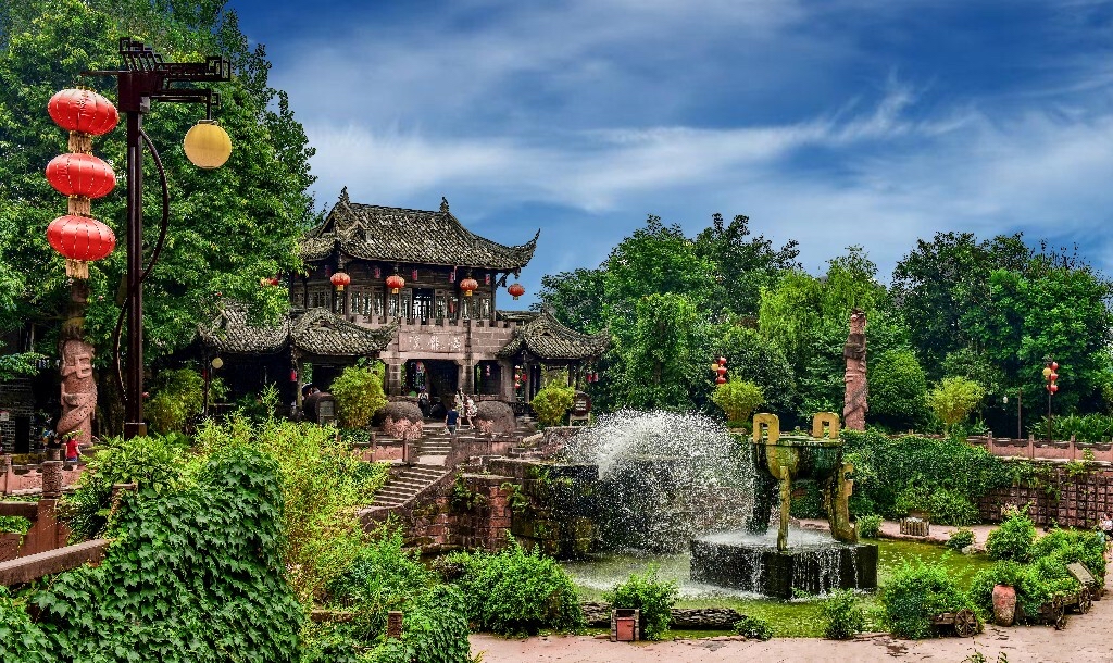 黄龙溪古镇 中国的“好莱坞“,天府第一名镇。古镇中贯穿古街的溪流穿街而下,时而湍急,时而舒缓,炎炎夏日里的戏水区更是消暑好去处,耍水的人们赤膊上阵,与水龙共舞,激情上演极具川西特色的“泼水节”。