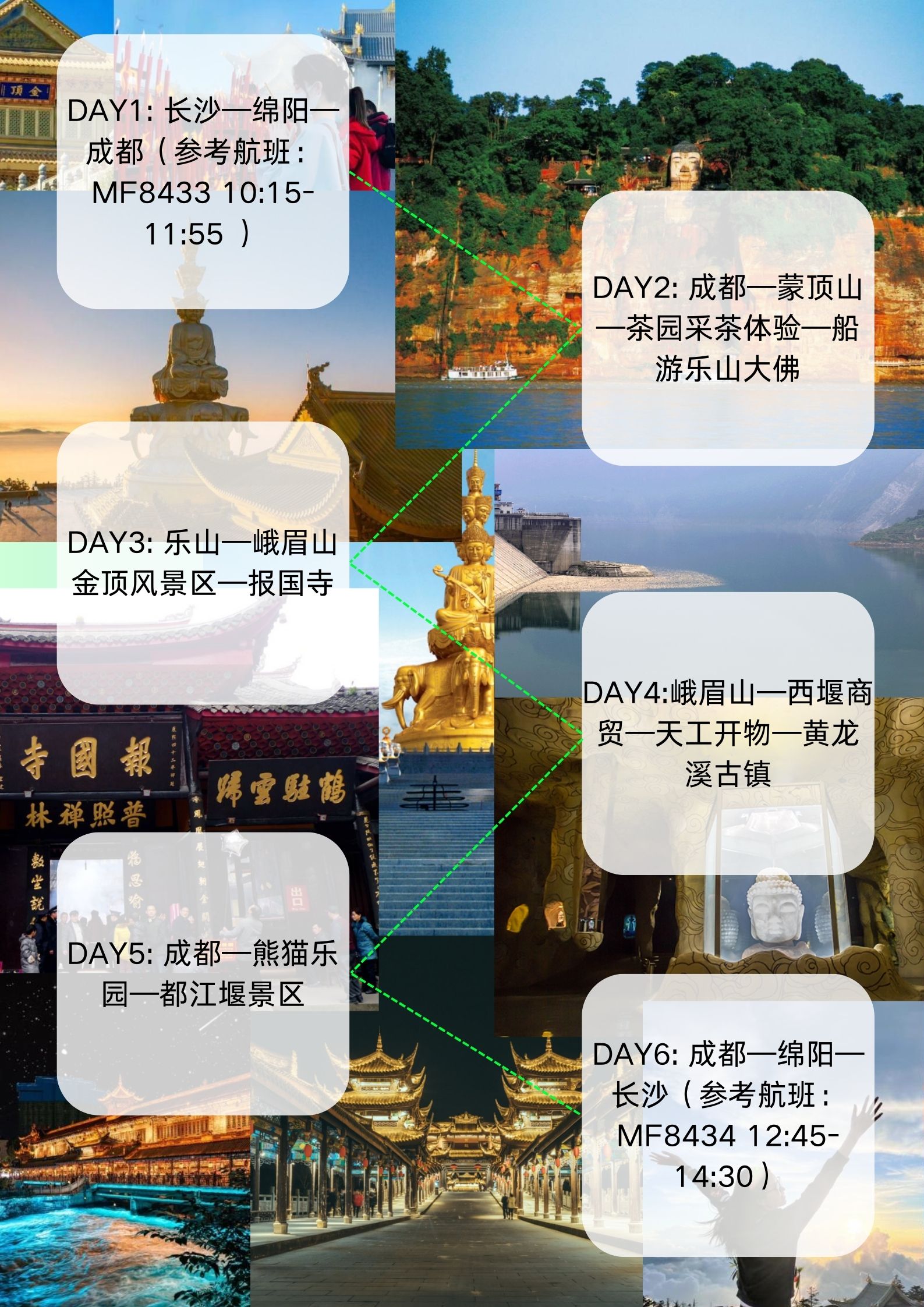 1、交通:长沙-绵阳经济舱,含机场建设及燃油费;当地空调旅游大巴