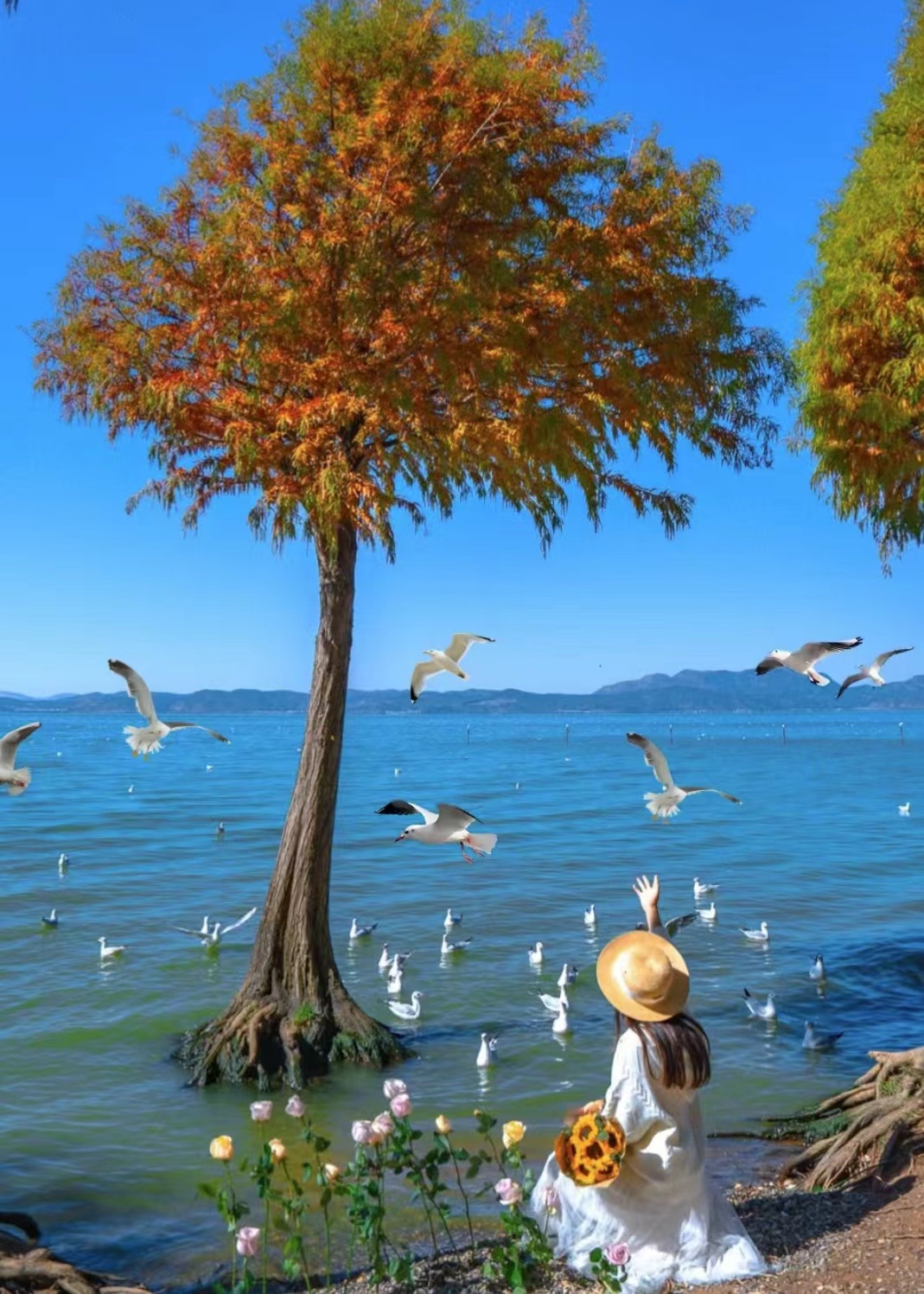 之后乘坐【敞篷车旅拍】一路欣赏无敌海景、田园风光、白族村落、海景湿地、路伴随蓝天白云、欣赏着蔚蓝的洱海和盛开的格桑花、沿途经过马久邑是一个最亲洱海的白族村落,您可以与爱人、