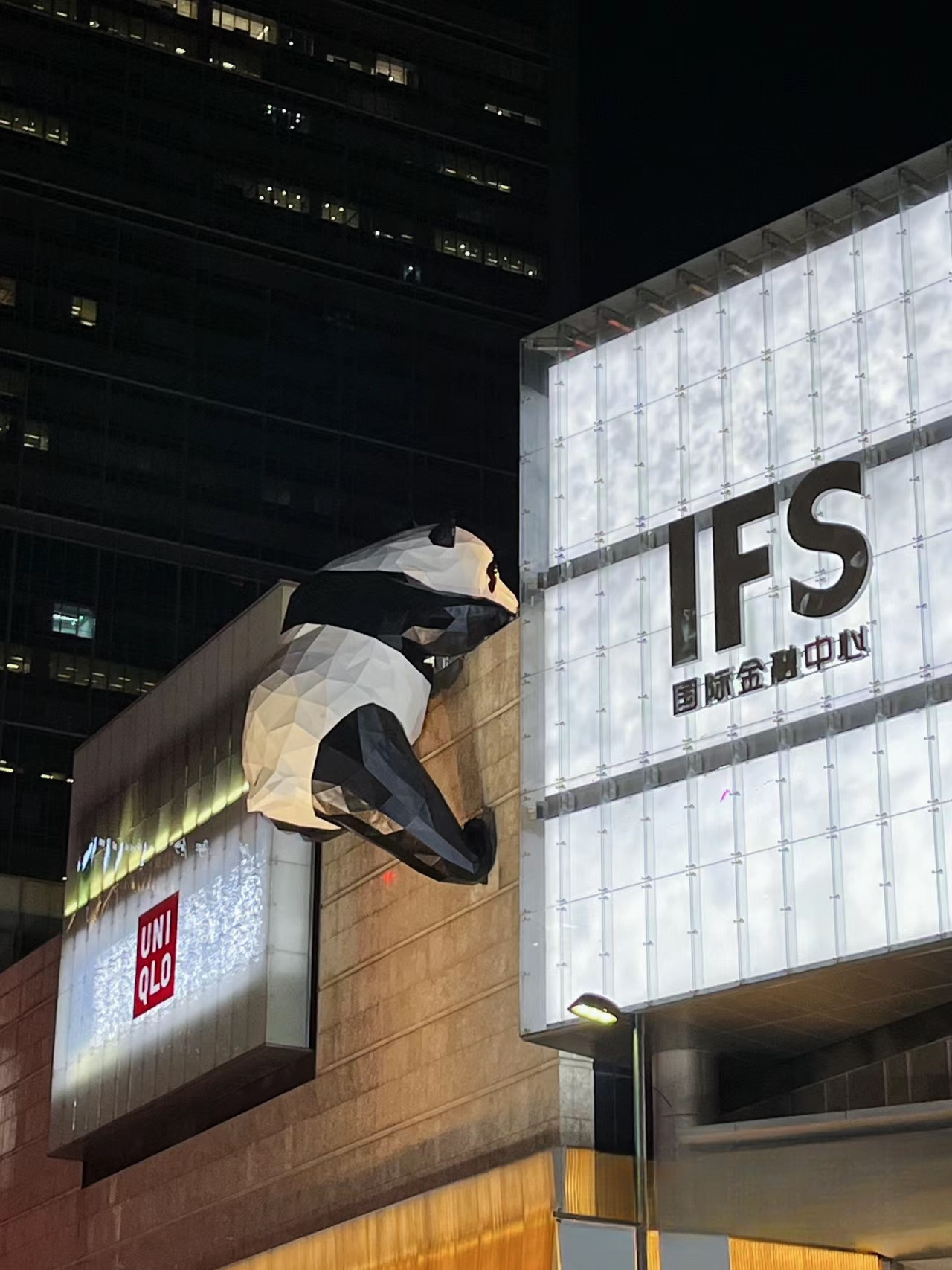 成都最火最网红的,莫过于【IFS“熊猫爬墙” 】了,独特的设计思路,让一个肥肥大大的大熊猫一半身体挂在商场的外边,一半身体爬上商场的花台,基本上你每天都能看到露天花台上排着队的人跟熊猫的大头拍照,然后商场旁边的步行街上一群人拿着相机对着熊猫的屁股拍照。 【成都远洋太古里】坐落成都中心地带,紧接春熙路地铁站,尽享优越交通和人流优势,比邻的千年古刹大慈寺更为其增添独特的历史和文化韵味。【方所】位于太古里地下一隅,与其说是一家书店,不如说它是一种装进文艺里的生活。