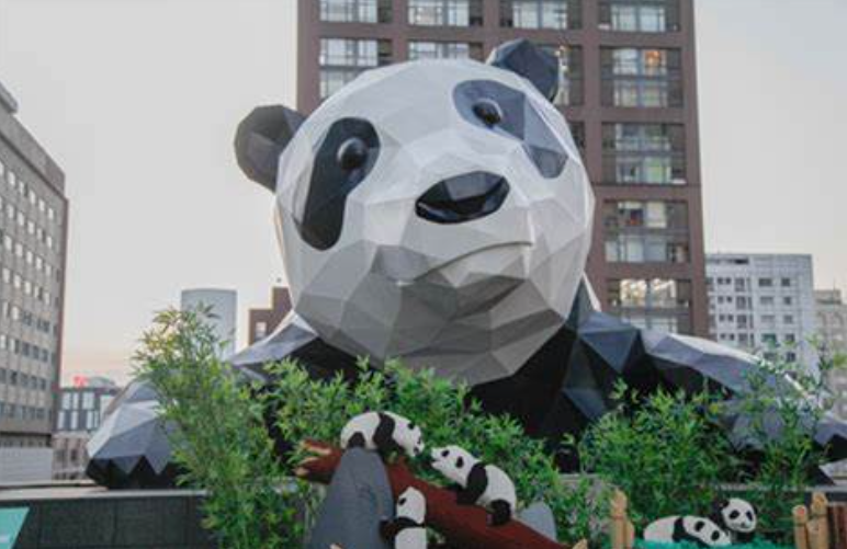 成都最火最网红的,莫过于【IFS“熊猫爬墙” 】了,独特的设计思路,让一个肥肥大大的大熊猫一半身体挂在商场的外边,一半身体爬上商场的花台,基本上你每天都能看到露天花台上排着队的人跟熊猫的大头拍照,然后商场旁边的步行街上一群人拿着相机对着熊猫的屁股拍照。