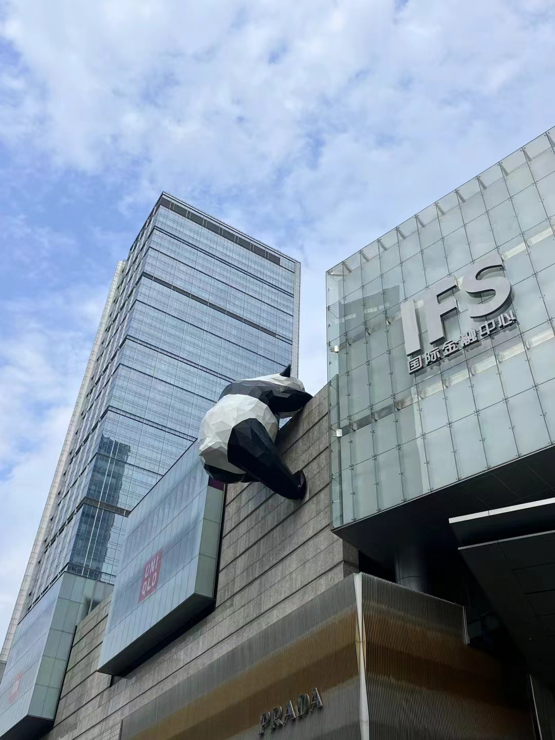 成都最火最网红的,莫过于【IFS“熊猫爬墙” 】了,独特的设计思路,让一个肥肥大大的大熊猫一半身体挂在商场的外边,一半身体爬上商场的花台,基本上你每天都能看到露天花台上排着队的人跟熊猫的大头拍照,然后商场旁边的步行街上一群人拿着相机对着熊猫的屁股拍照。 【成都远洋太古里】坐落成都中心地带,紧接春熙路地铁站,尽享优越交通和人流优势,比邻的千年古刹大慈寺更为其增添独特的历史和文化韵味。【方所】位于太古里地下一隅,与其说是一家书店,不如说它是一种装进文艺里的生活。