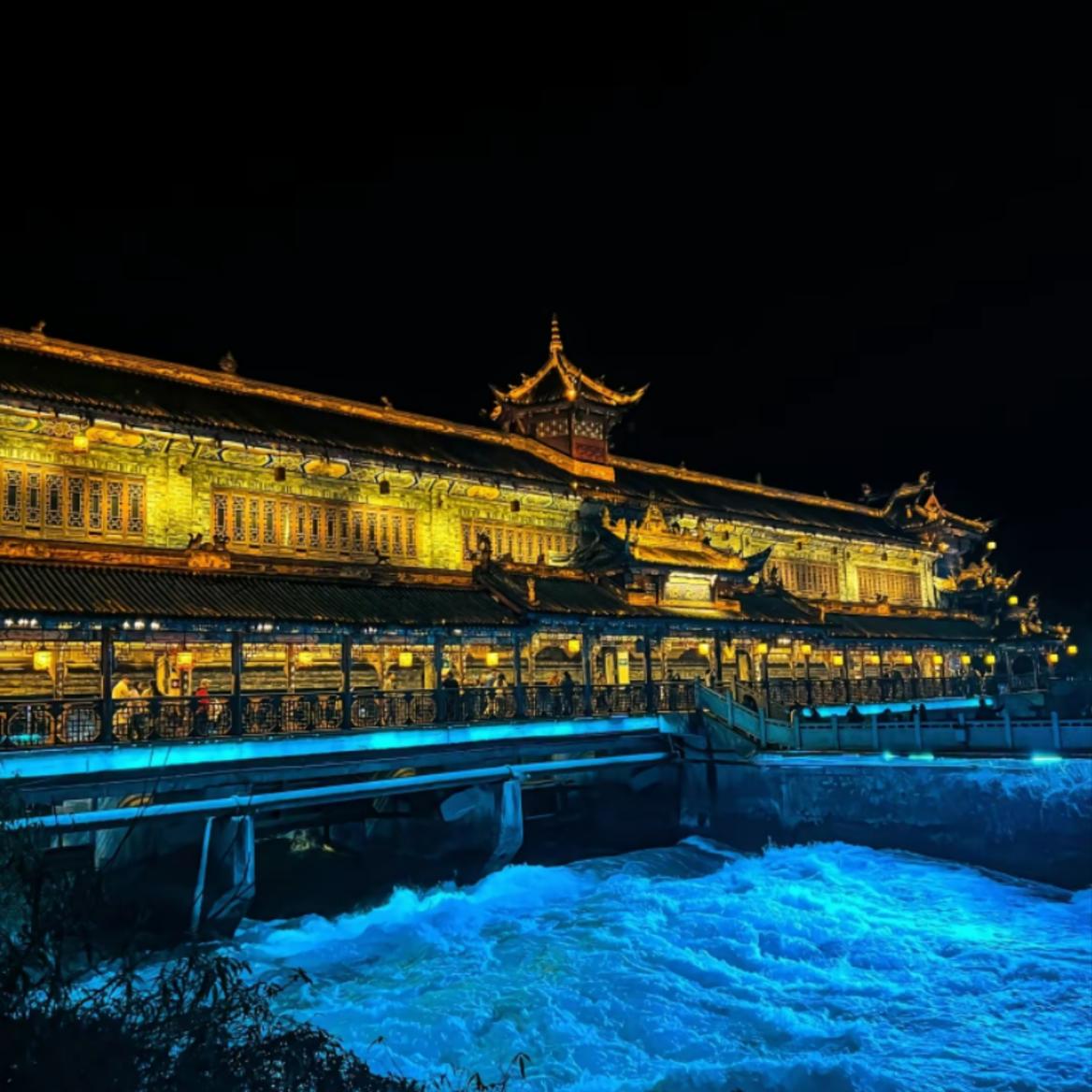 IFS—太古里商圈—都江堰水利工程—灌县古城—西街—南桥成都最火最网红的,莫过于【IFS“熊猫爬墙” 】了,独特的设计思路,让一个肥肥大大的大熊猫一半身体挂在商场的外边,一半身体爬上商场的花台,基本上你每天都能看到露天花台上排着队的人跟熊猫的大头拍照,然后商场旁边的步行街上一群人拿着相机对着熊猫的屁股拍照。【成都远洋太古里】坐落成都中心地带,紧接春熙路地铁站,尽享优越交通和人流优势,比邻的千年古刹大慈寺更为其增添独特的历史和文化韵味。【方所】位于太古里地下一隅,与其说是一家书店,不如说它是一种装进文艺里的生活。午餐后参观世界文化遗产、旷世奇功—【都江堰水利工程景区】(景区内外观光车30元/人,费用自理),乘坐古城区观光车到达都江堰离堆公园大门,都江堰水利工程由蜀郡守李冰于战国秦昭王时期(公元前 227 年)在岷江上修建的中华第一古堰,被列为“世界文化遗产”:宝瓶口引水口、飞沙堰泄洪坝、观鱼嘴分水堤,过安澜索桥,颇为壮观,还可参观 5.12 地震重建的的秦堰楼、纪念李冰父子的二王庙。可选择搭乘玉垒阁观光扶梯(40元/人,费用自理)至玉垒阁观都江堰壮丽全景。相伴千年古堰的【灌县古城】是一座景城一体的古城,一座品味生活的古城。登玉垒看浮云、依南桥赏宝瓶、上文庙拜孔圣临内江品夜啤、逛杨柳河休闲大美古城入画来,处处留下了游人由衷的赞叹。随后来到都江堰宝瓶口以南的【西街】小巷,与伏龙观隔江相望,是一条有着几百年历史的古街,是南方丝绸之路入藏的起点,被誉为古代茶马道上的第一街。西街小巷一路逛吃后来到【都江堰南桥】,是南街与复兴街之间的一座雄伟壮丽的廊式古桥。