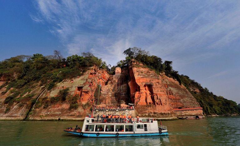 乐山游览,【船游乐山大佛】:又名凌云大佛。乐山大佛素有“山是一尊佛·参拜,庄严雄伟,佛是一座山·仰视,气势崴嵬”之称。