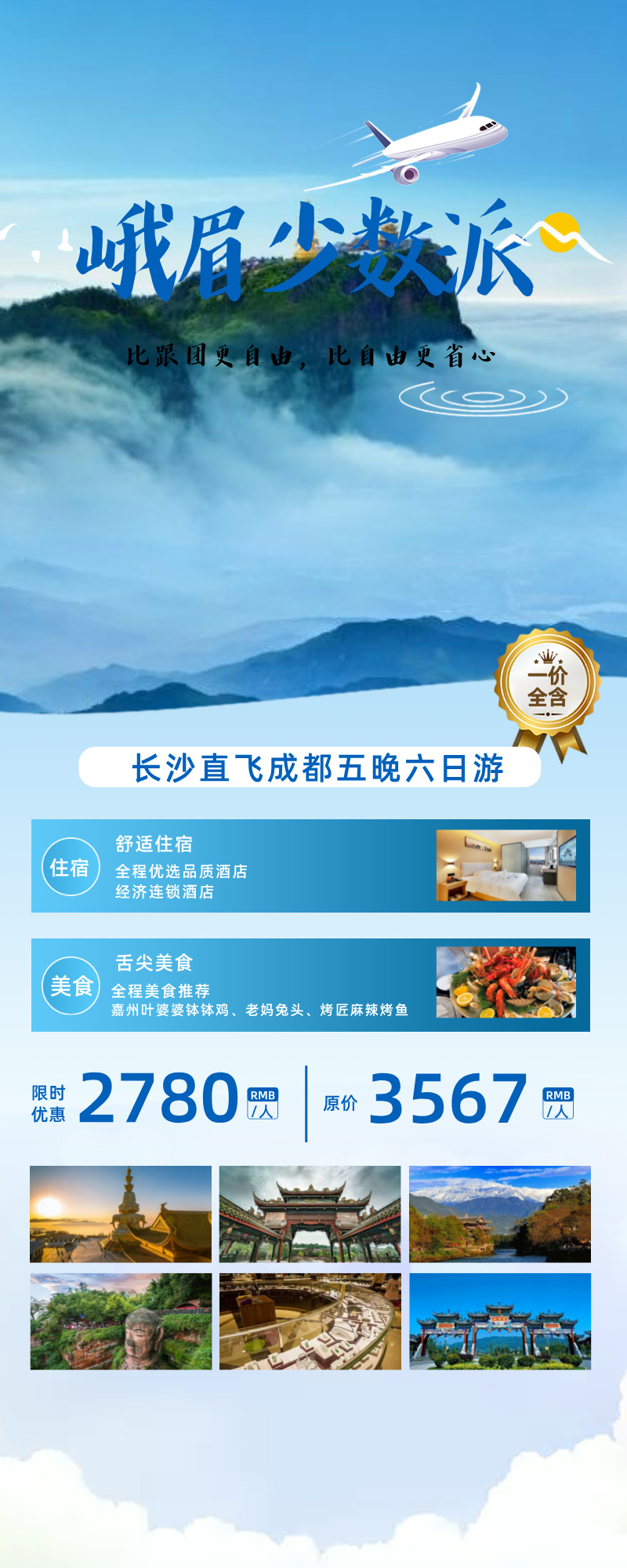1、交通:长沙-绵阳经济舱,含机场建设及燃油费;当地空调旅游大巴