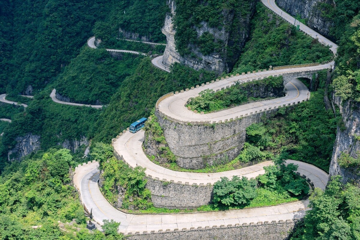 山顶游玩后座索道下山至中转站换乘环保车,感受“天下第一公路奇观”——【通天大道】的惊奇体验沿途观赏七级瀑布、金龟驮元宝、将军峰、箭杆峰等景观。抵达上天梯,攀登999级台阶的上天梯,抵达天门洞底,感受造化神奇,尽情欣赏天门洞内外的壮丽景色。