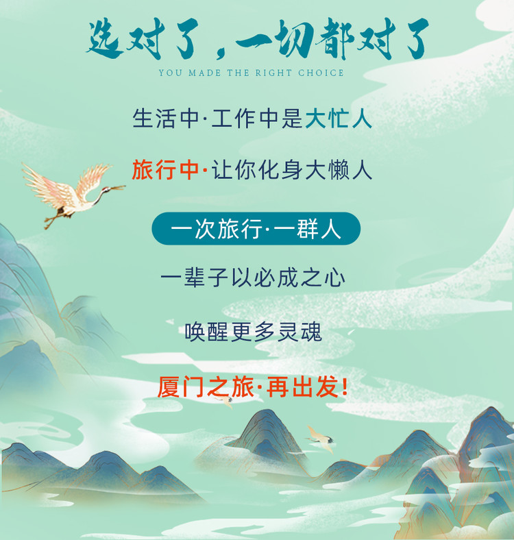交通:长沙—厦门高铁二等座,当地空调旅游大巴,儿童报价不含高铁票;