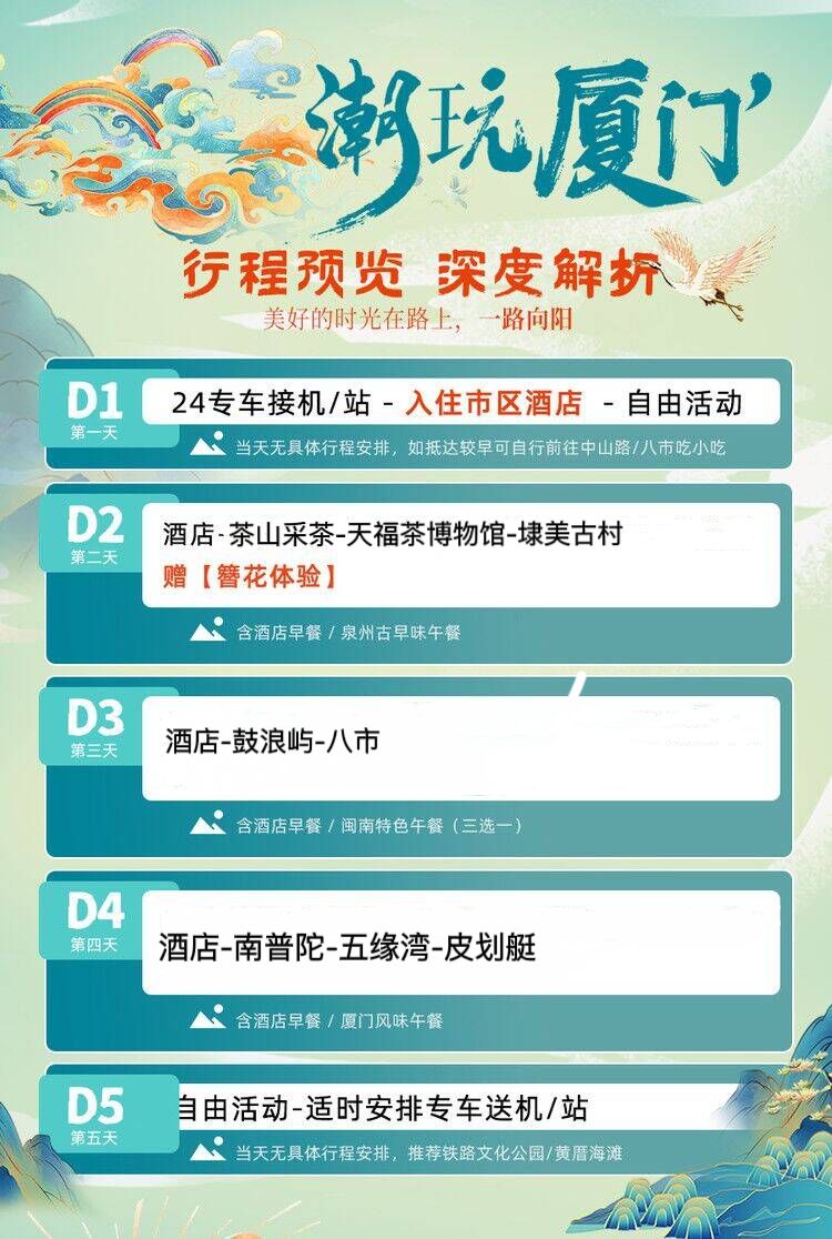 往返厦门的交通费用(如机票、火车票等,具体取决于出发地和旅行社的安排,但一般不包含在报团费用中,除非特别说明)。