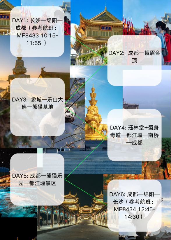 1、交通:长沙—绵阳往返经济舱,含机场建设及燃油费;当地空调旅游大巴