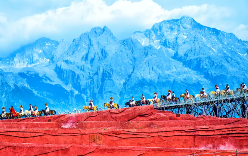 【印象丽江】赠送价值280元的大型歌舞表演印象丽江剧场位于海拔3100米的玉龙雪山甘海子,以玉龙雪山的雄峰为天然背景,演员由来自10个少数民族的500个农民组成。