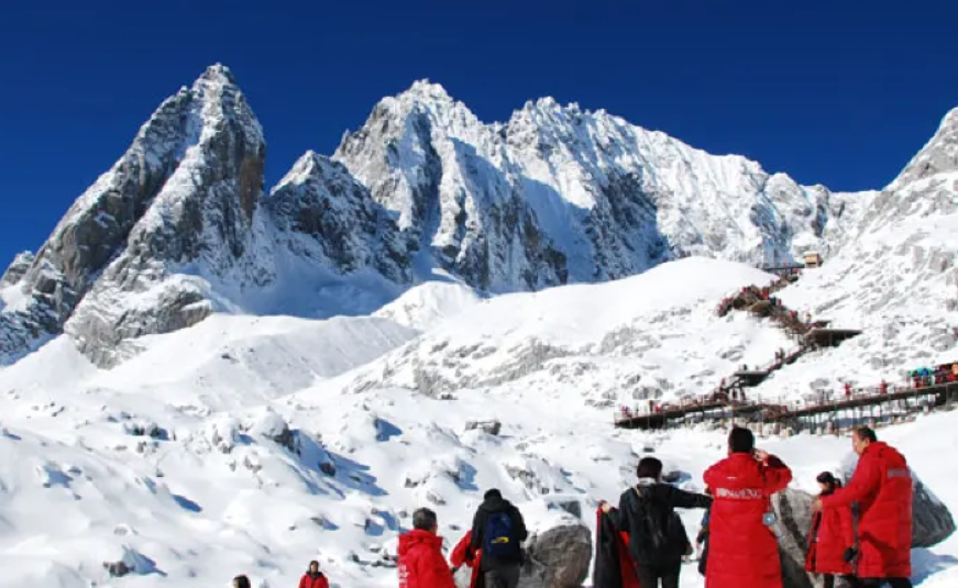 【冰川大索道】(赠送玉龙雪山防寒服和氧气瓶)。游玉龙雪山从海拔3000米的草甸出发,穿越高大的松杉树林,远眺纳西圣山,欣赏雄奇壮丽的玉龙雪山。