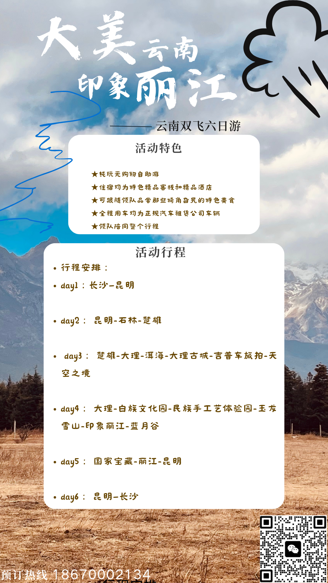 1、交通:长沙—昆明往返经济舱,含机场建设及燃油费;当地空调旅游大巴
