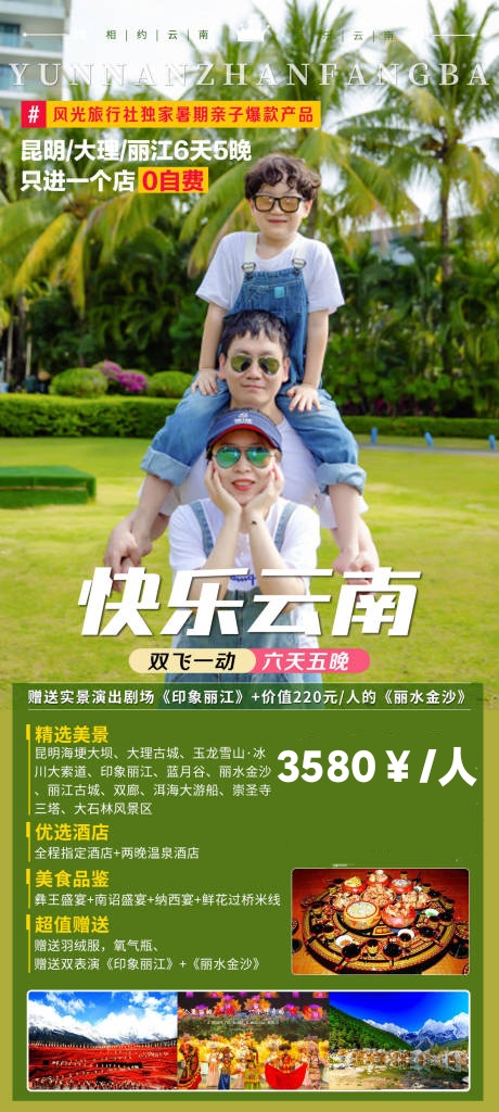 【云遇云南】暑期亲子昆大丽双飞6日游(0自费)是一款专为家庭设计的旅游产品,旨在为家长和孩子提供一个寓教于乐的云南之旅。以下是该产品的详细介绍: