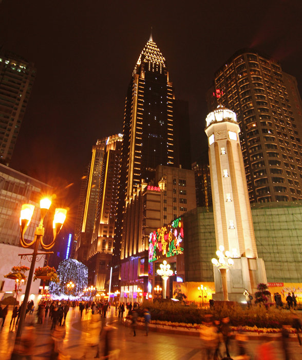 14:00游览解放碑(约1.5小时)解放碑,原名抗战胜利纪功碑,是全中国唯一的一座纪念中华民族抗日战争胜利的国家纪念碑,以纪念重庆对于国家的伟大贡献。位于重庆市渝中区,位于民权路、民族路和邹容路交汇处,它是抗战胜利和重庆解放的历史见证。碑体绝大部分呈白色,有些地方是肉色,上端有几架大钟,朝着四面八方,每到整点时,便会响起声音。塔是八角形的。"解放碑"是解放碑中央商务区(CBD)的代名词。有"西部第一街"美誉。有望跻身中国第三大商圈。