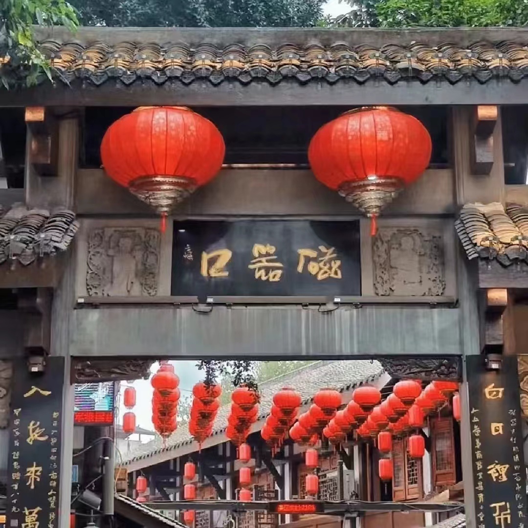 下午游览千年古镇磁器口(2小时)位于重庆市沙坪坝区嘉陵江畔,始建于宋代,拥有"一江两溪三山四街"的独特地貌,形成天然良港,是嘉陵江边重要的水陆码头。曾经"白日里千人拱手,入夜后万盏明灯"繁盛一时。磁器口古镇蕴含丰富的巴渝文化、宗教文化、沙磁文化、红岩文化和民间文化,各具特色。一条石板路千年磁器口,是重庆古城的缩影和象征。被赞誉为"小重庆"。磁器口古镇开发有榨油、抽丝、制糖捏面人、川戏等传统表演项目和各种传统小吃一条石板路千年磁器口,是重庆古城的缩影和象征。被赞誉为"小重庆"。后车观李子坝轻轨站穿楼,轨乱穿梭,变身过山车。在重庆轻轨2号线的李子坝站穿越房屋,每天都会上演轻轨穿楼越壑,空中飞驰而过的神奇一幕。现已经成了全国的网红景点,每天都有很多人拍轻轨穿过楼房的一瞬间。