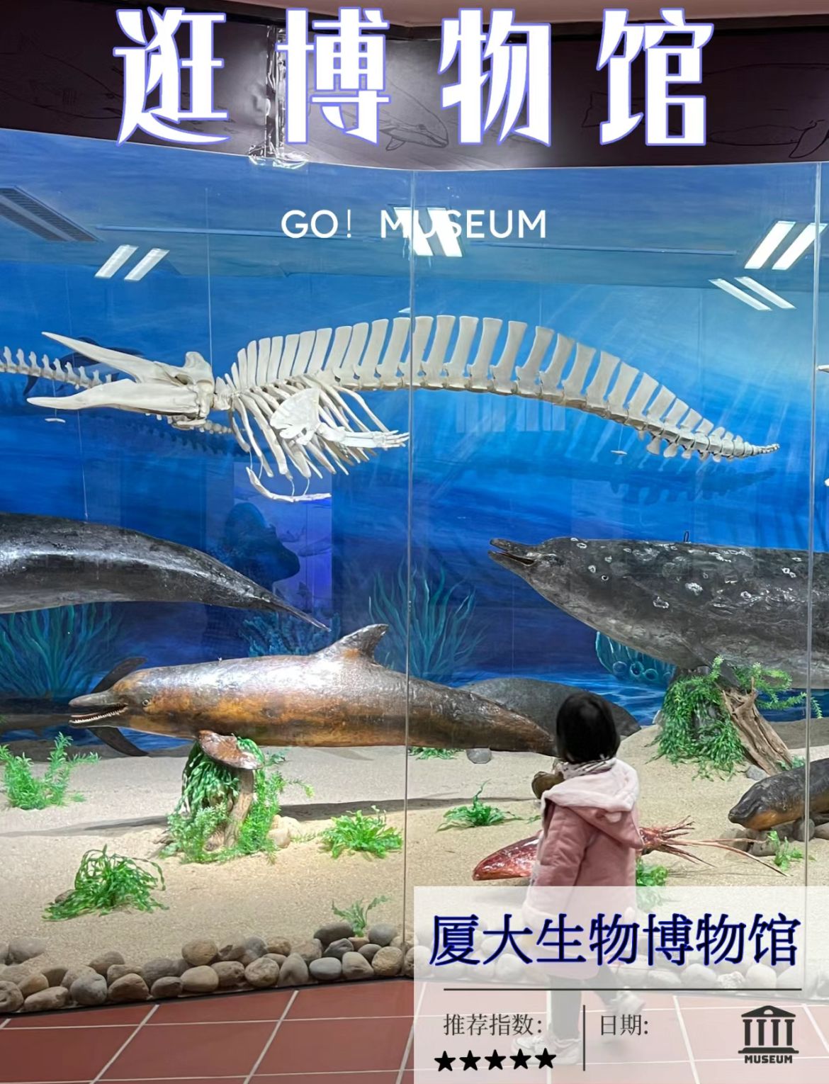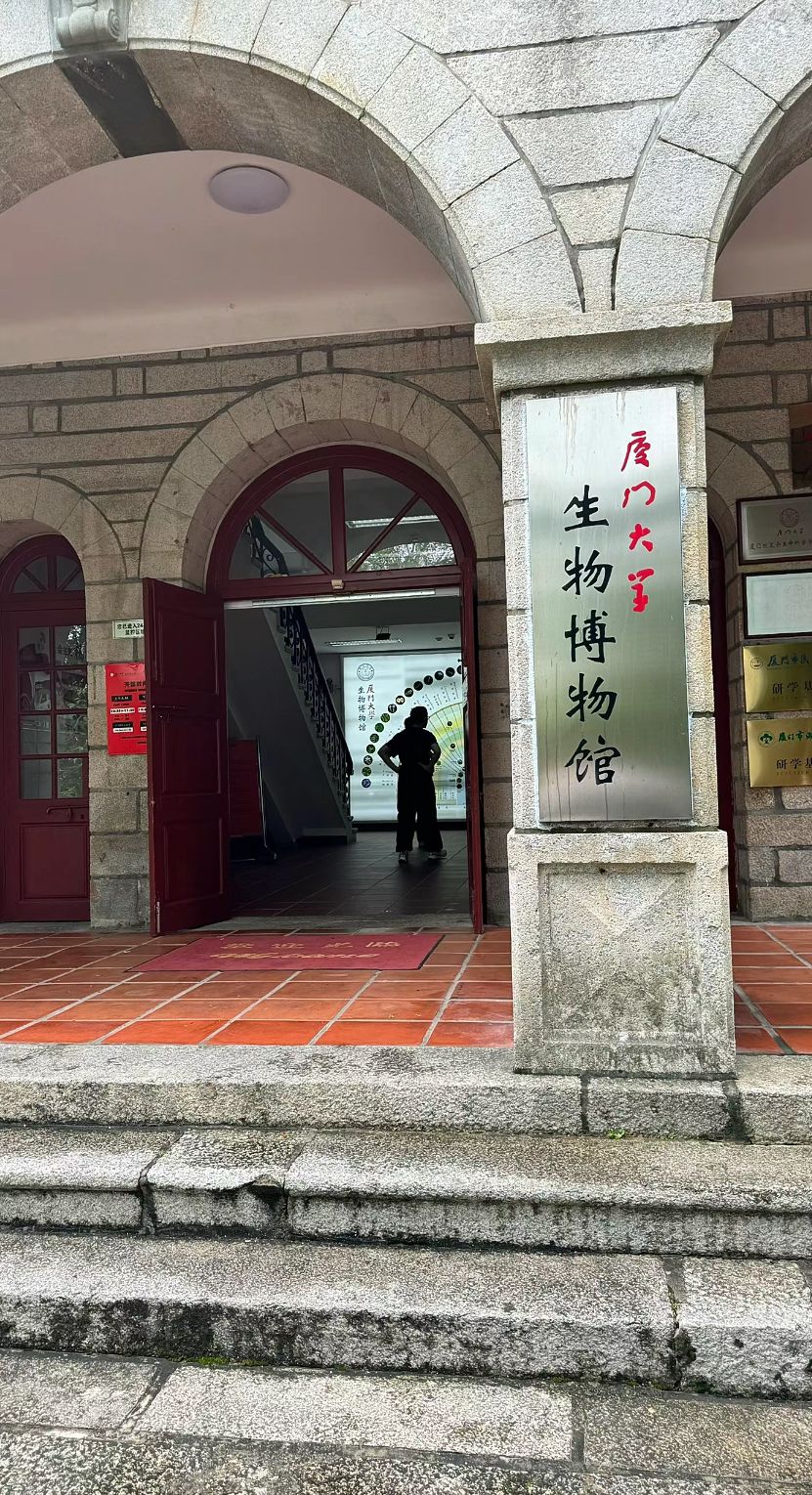 13:30 参观【厦大生物博物馆】。【厦门生物博物馆】目前面积共5600平方米,共三层,第一层包括鲸豚馆、龟类馆、珊瑚馆、贝壳馆等海洋生物展馆;第二层包括非洲草原馆、熊猫馆、狼馆等陆地生物展馆;第三层包括鸟类、古生物、极地馆等展馆。 馆内收藏着3000多个动物实物标本,主要是剥制标本和瓶装浸制标本。这些标本有分布于全国各地、生活在各个不同生态环境的各类动物,也有不少来自于国外的种类。每一个标本都有属于自己的一段历史、有的标本历史可追溯到建馆之初,至今已经保存了90多年,有的标本则是近期才获得和确定的种类。