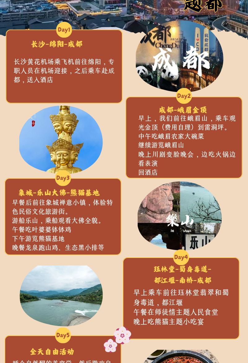 乘车前往绵阳,乘飞机返回长沙,结束难忘的四川之旅.