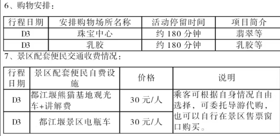 在酒店享用温暖可口的早餐后,乘车前往游览【珏琳堂翡翠】和【蜀身毒道】【都江堰】建于公元前256年,是全世界至今为止,年代最久、唯一留存、以无坝引水为特征的宏大水利工程。两千多年来,它一直发挥着防洪灌溉作用,使成都平原成为水旱从人、沃野千里的天府之国。世界文化遗产-都江堰旅游区为国家AAAAA级旅游景区、国家级风景名胜区。午餐享用【师徒情主题人民食堂】:成都最火爆、最有情怀的红色怀旧的记忆餐厅。厨王大刀白肉、食堂木桶鱼、招牌花椒兔、鲜椒口口脆、连山回锅肉、麻婆豆腐、手撕莲白,酸辣土豆、炝炒时蔬晚餐享用【熊猫主题小吃宴】:专属定制,精挑细选每一道本土小吃,吃的就是经典!凉菜:伤心凉粉、口味凉面,泡菜什锦;热菜:火锅冒菜,鸡汤耙耙菜,滋补银耳汤蒸笼:粗粮,川西羊疙瘩,一品熊猫包,椒香手撕鸡,天府叶儿粑,香酥烤鸭,川味干锅。都江堰必吃小吃:【叫花鸡腿】皮薄肉嫩,外配荷叶点缀,十里飘香。