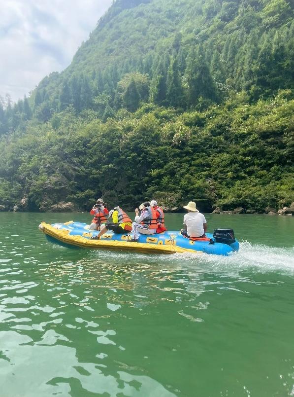早餐后乘车前往前往【九天玄女洞】--“滴石铸玄女,暗河镂九天”。首先由专人带领一起“竹竿舞”,领略土家风情、后游览“亚洲第一洞”九天洞,面积250多万平方米,相当于400个标准足球场大小,被亿万游客誉为“世界奇迹”、“亚洲最大、世界最奇”、“溶洞女王”。后游览【茅岩河平湖游】,茅岩河是一幅多彩多姿、生动活泼的水国画,是一帧竞奇斗艳、婀娜多娇的青山图。然后游玩【茅岩河漂流】项目(平湖游和漂流为赠送项目,若因天气原因无法游玩漂流或自身原因不参加,费用不退),目前已成为中国最大的和最安全的旅游漂流项目,是张家界“山、水、洞”旅游精品项目中最富刺激的项目。与浪共舞,一漂难忘,驾橡皮舟沿茅岩河漂流而下,漂流水程20公里,落差66米,有惊无险的河滩共55个。结束茅岩河漂流行程后乘车返回张家界市区,入住酒店休息