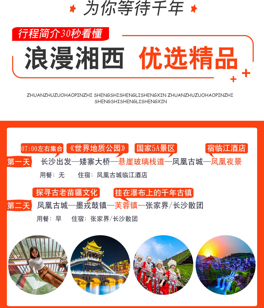 | 门票及地面项目 | 景区景点/场馆内收费参考:矮寨大桥景区/场馆小交通、凤凰古城景区/场馆小交通、芙蓉镇景区/场馆小交通 查看完整信息 |