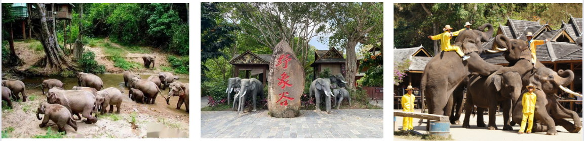 野象谷通过高空观象栈道、雨林观光索道、亚洲象表演学校等多个游览项目,让游客得以在不干扰亚洲象生活的条件下安全地观察亚洲野象及其生存环境,成为中国唯一一处可以与亚洲野象近距离交流的地方,被誉为“人类与亚洲野象沟通的桥梁”。在观看完大象们在大象学校的精彩表演后,参加亚洲象志愿者体验,给大象喂食,清理象舍。