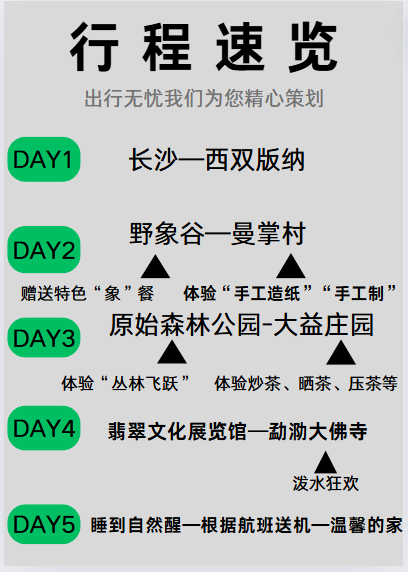 1、交通:长沙—版纳往返经济舱,含机场建设及燃油费;当地空调旅游大巴
